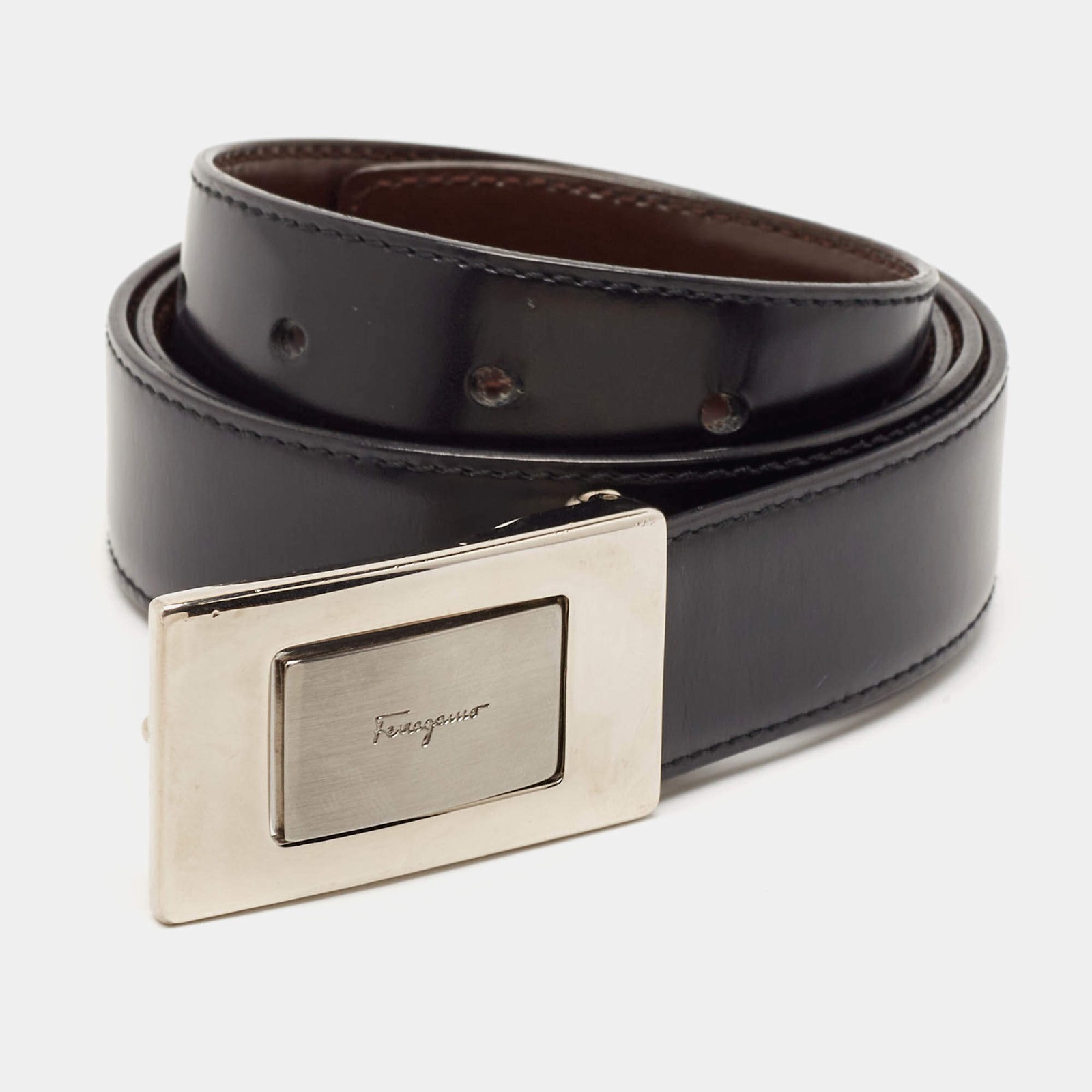 Our eBay Store About Us Contact Us Add to Favorite Sellers Salvatore Ferragamo BrownBlack Leather Logo Cut to Size Reversible Belt Two looks in one, this Ferragamo belt is all about versatility. Flip between brown and black leather depending on your mood, and let the signature buckle pull everything together. Product Details Brand Salvatore Ferragamo Size Not Available Color Brown Includes The Luxury Closet Packaging Material Leather Certified by The Luxury Closet This item has gone through a detailed authentication process overseen by our experts. We offer a lifetime guarantee of authenticity on all our items. How We Check The in-house team of experts at The Luxury Closet is highly trained to verify the authenticity and the condition of the luxury products. They ensure that only 100% authentic items are put on sale.The evaluation process is unique with its own mix of assessment criteria and differs according to the category. Each item is evaluated based on the following combination of hallmarks, hardware, stitching, symmetry, material, craftsmanship, stamping, codes, hologram stickers, and packaging. Our authenticators also check if the items have been modified or amended (e.g., aftermarket diamonds, replaced batteries, repaired bags, etc.) International Buyers Import duties, taxes and charges are not included in the item price. These charges are the buyers responsibility. Please check with your country’s customs office to determine what these additional cost will be prior to buying.
