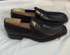The Salvatore Ferragamo Dark Brown Leather Penny Loafers are a stylish and sophisticated choice for the modern man. Made in Italy with high-quality leather, these slip-on loafers feature a classic solid brown color with tasseled accents for added detail. The D width and leather lining provide comfort and a great fit, while the leather outsole ensures durability. Perfect for a dressy occasion or a stylish everyday look, these loafers are a timeless addition to any wardrobe.