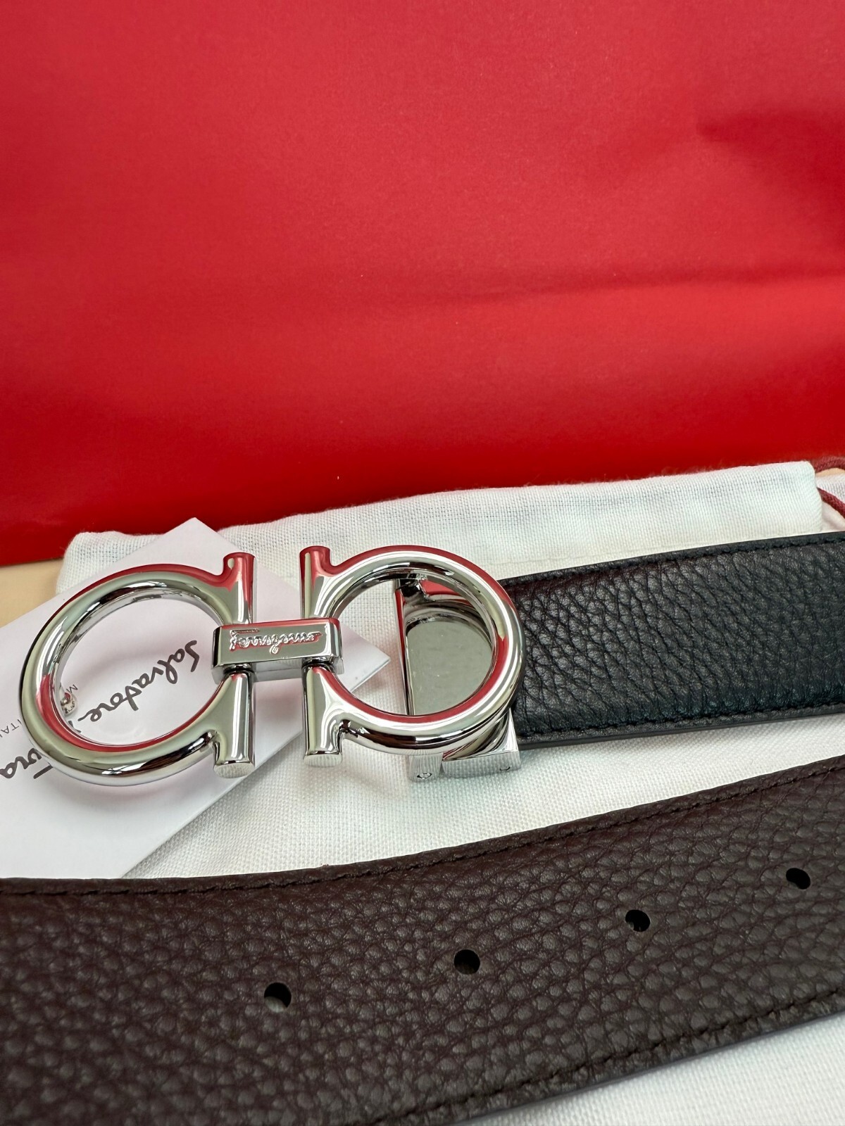 Salvatore Ferragamo Men's Black / Brown Reversible Leather Belt Size 120 cm fits 42/44 Waist, in New Condition comes with Dust Bag, Tag's. "This belt can be adjusted to a smaller size." NEW BELT.