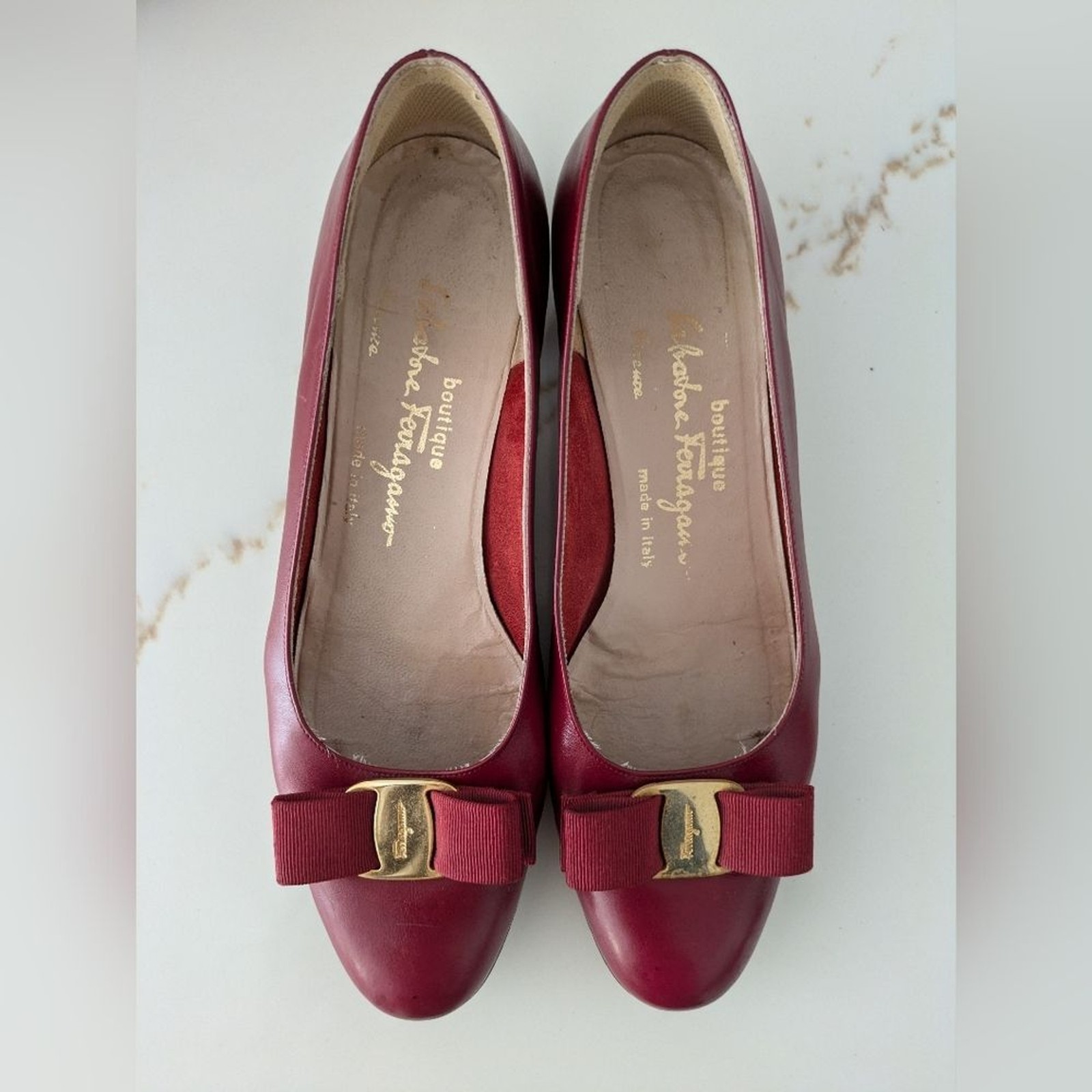 Elegant and timeless, these Salvatore Ferragamo women's shoes feature a beautiful deep red leather finish and bow accent with gold Ferragamo imprint. Perfect for adding a touch of sophistication to any outfit. Vintage, pre-loved condition Please let me know if you have any questions - Happy to entertain reasonable offers