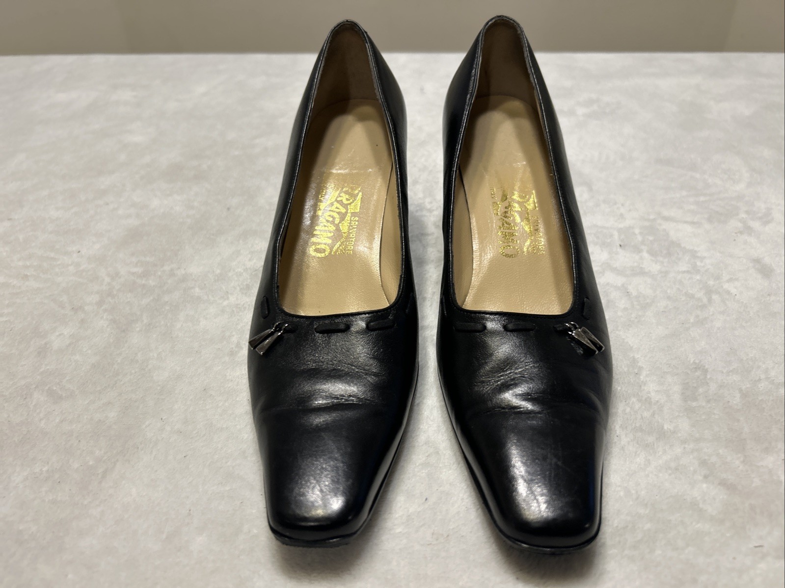 Salvatore Ferragamo Women’s Shoes Size 8 AA Heels Black Pumps Leather Italy 90s