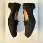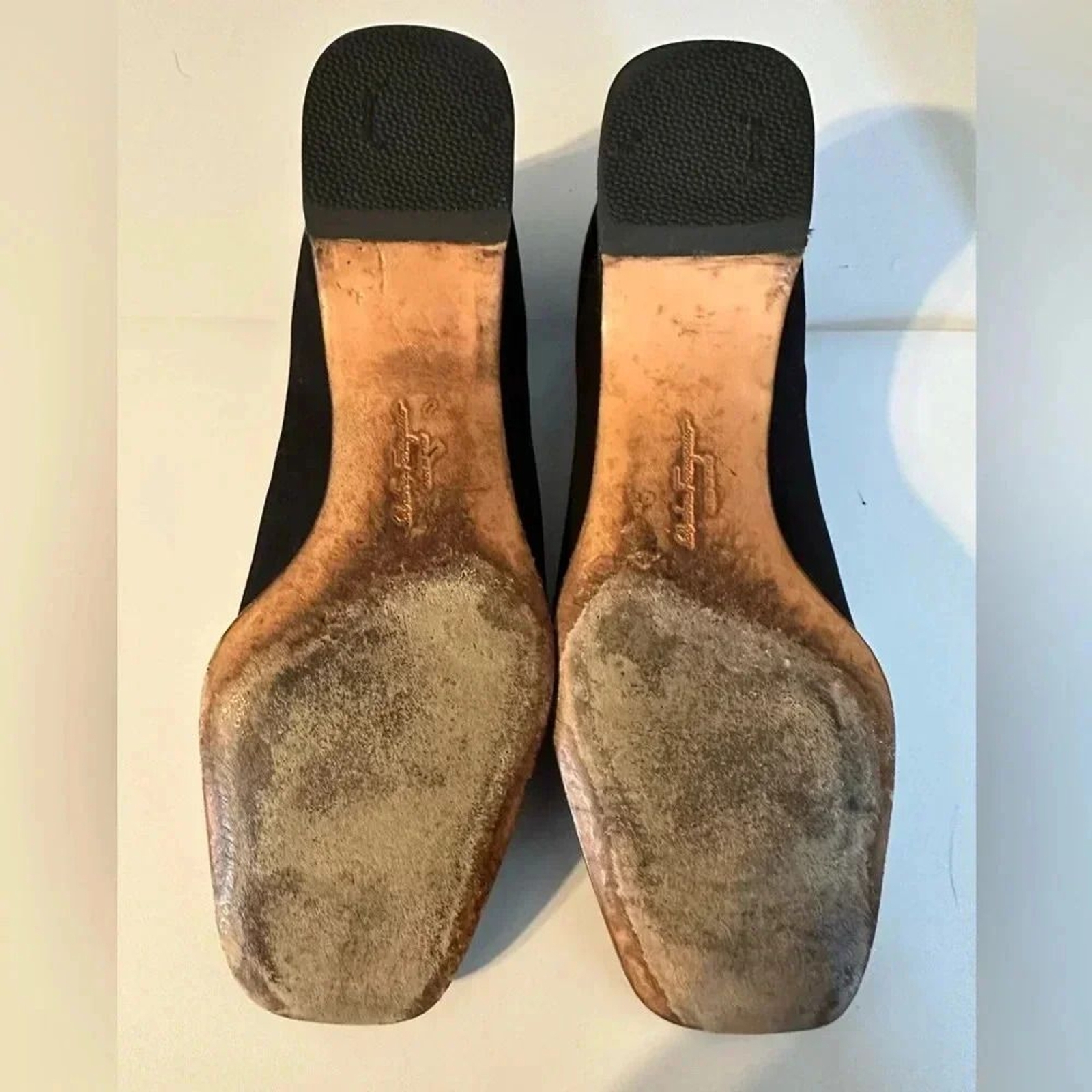 Vintage and comes with original dust covers for each shoe. Brand: Salvatore Ferragamo Style: Loafer Flat Shoes Color: Black Shoe Width: C (standard) Pattern: Solid Closure: Slip On In good used condition. There are signs of wear but the structure of the shoe is excellent. ❤️ Five Star Seller 📬 Fast Shipping 🌱 Sustainable 🚫 Smoke and Fragrance Free Home