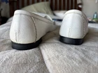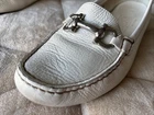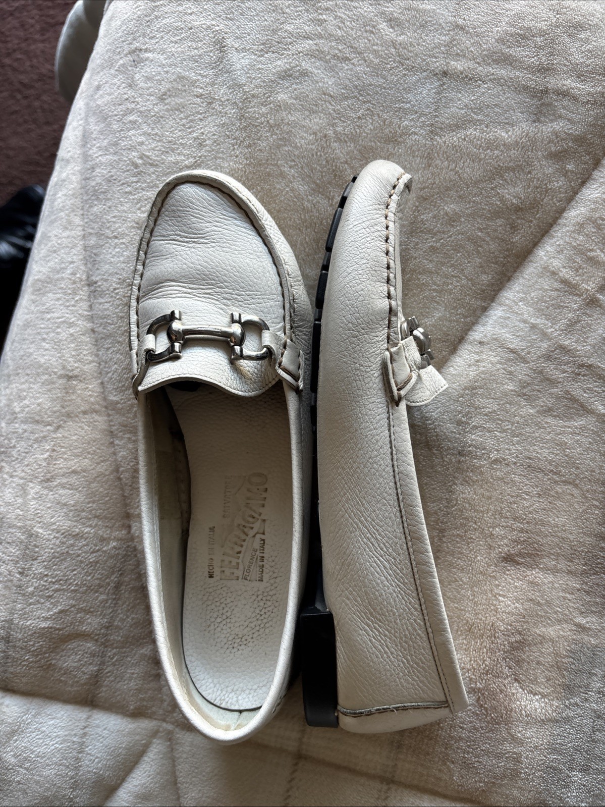 Salvatore Ferragamo beautiful women’s white loafers, Gancini bit loafers. Made in Italy, stylish, elegant, casual, very comfortable and versatile shoes. Soles have minimal wear, almost like new. Leather is a little worn out in the tips. Please see photos. Other than that, shoes are in a very good shape. Made in Italy Size is 8C