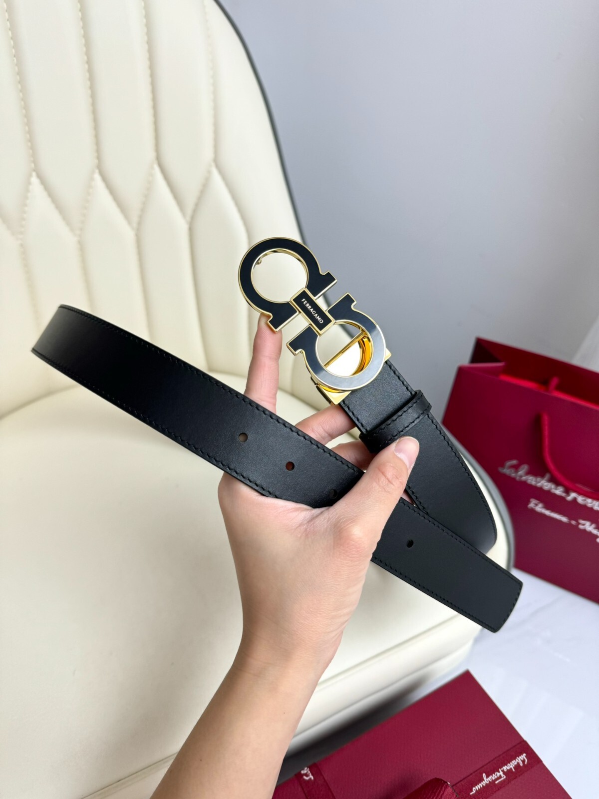Authentic Salvatore Ferragamo leather belt 32-44 Width:3.5cm/1.38in 80/32-Pants:26-28,Waist (cm):65-73 85/34-Pants:28-30,Waist (cm):73-80 90/36-Pants:30-33,Waist (cm):80-87 95/38-Pants:33-35,Waist (cm):87-93 100/40-Pants:35-37,Waist (cm):93-100 105/42-Pants:37-40,Waist (cm):100-110 110/44-Pants:40-42,Waist (cm):110-120