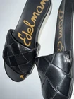 The Sam Edelman Bay Black Woven Leather Slide Sandals in women's size 6M are stylish and comfortable flats perfect for the summer, fall, and spring seasons. These slip-on sandals feature a low heel height, making them ideal for everyday wear. Crafted from leather, they offer a sleek black design that is versatile and easy to pair with a variety of outfits. The Sam Edelman Bay model is known for its quality construction and trendy style, making it a must-have addition to any woman's shoe collection.