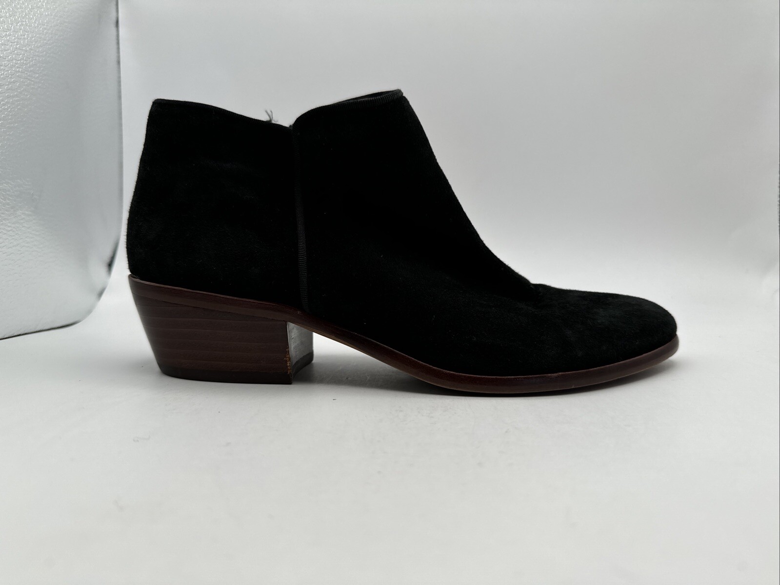 Sam Edelman Black Suede Leather Zip Up Ankle Boots Booties Women's Size 7M Pre-owned. Some wear as shown. See measurements and pictures.