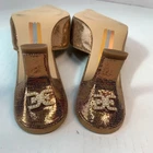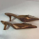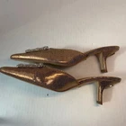Size 9.5 Deep Gold Metallic color leather Heel height 2.25 inches Slip on