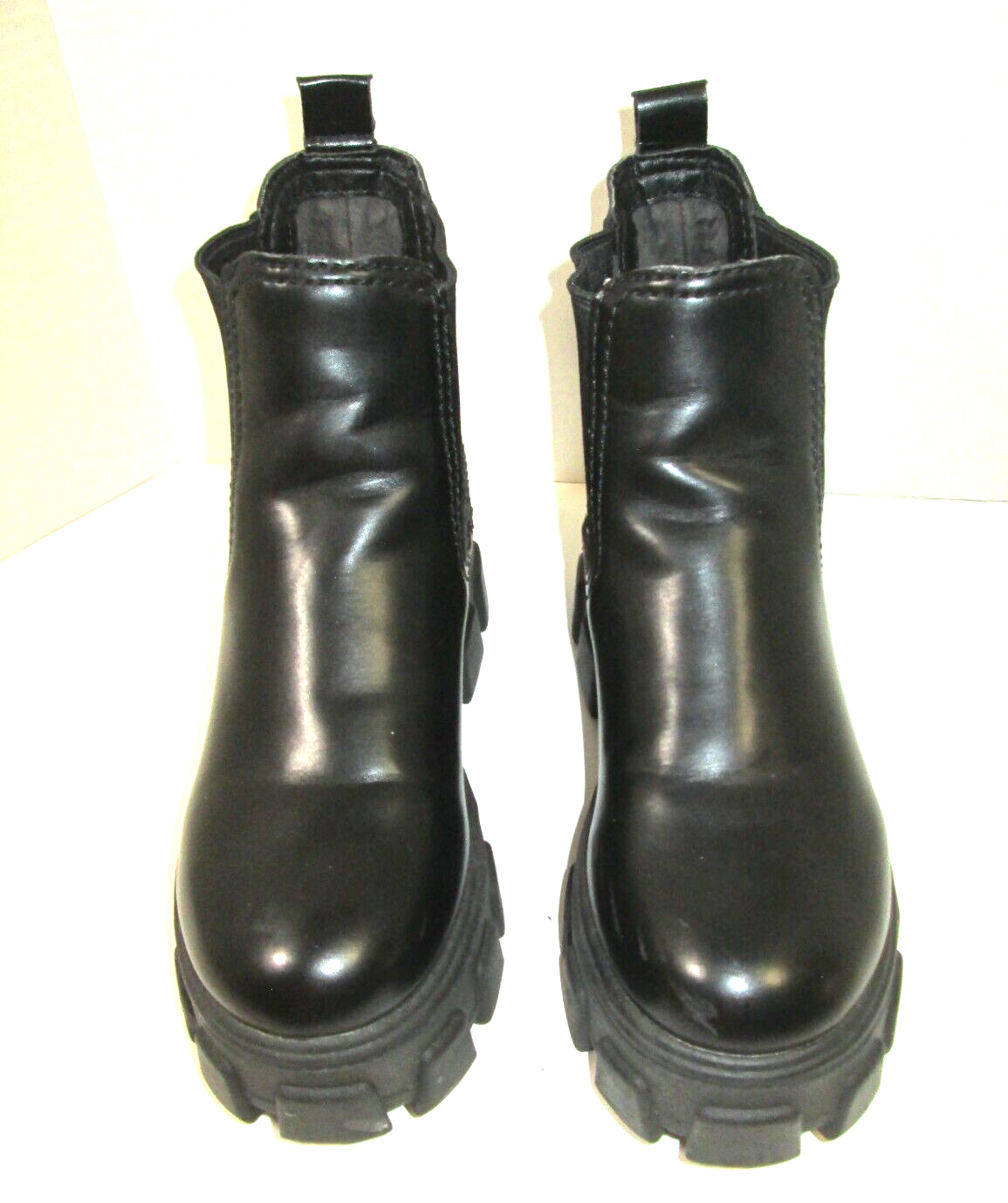 Step out in style with these Circus by Sam Edelman 'Darielle' boots. The black boots feature a round toe shape and pull-on closure, with a mid-calf boot shaft style. The Chelsea style boots have a chunky lug sole and a cushioned insole for maximum comfort. Made with a blended fabric and faux leather upper material, these boots are perfect for any occasion, from party/cocktail to casual wear. The boots come in US shoe size 7.5, UK shoe size 5, and EU shoe size 38. The outsole material is made of rubber, making it slip-resistant and durable. The boots are part of the Circus by Sam Edelman Darielle product line and are a perfect addition to your shoe collection.