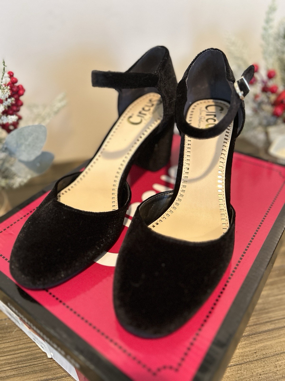 Circus by Sam Edelman Joelle Ankle Strap Pumps • Color: Black velvet • Size: 8.5 • Block heel, approx 2–2.5” • Adjustable strap • Original box included • Excellent condition, gorgeous velvet, soles show no visible wear, likely unworn or only tried on indoors Perfect for holiday parties, winter weddings, and festive nights out… a classic black velvet pump with comfortable block heel and secure ankle strap. (I’m actually not sure if they’ve ever been worn other than to try on but I can’t be 100% positive so I’m listing them and pricing them as pre-owned but in excellent condition.) 10% of this sale supports Save the Children 💗