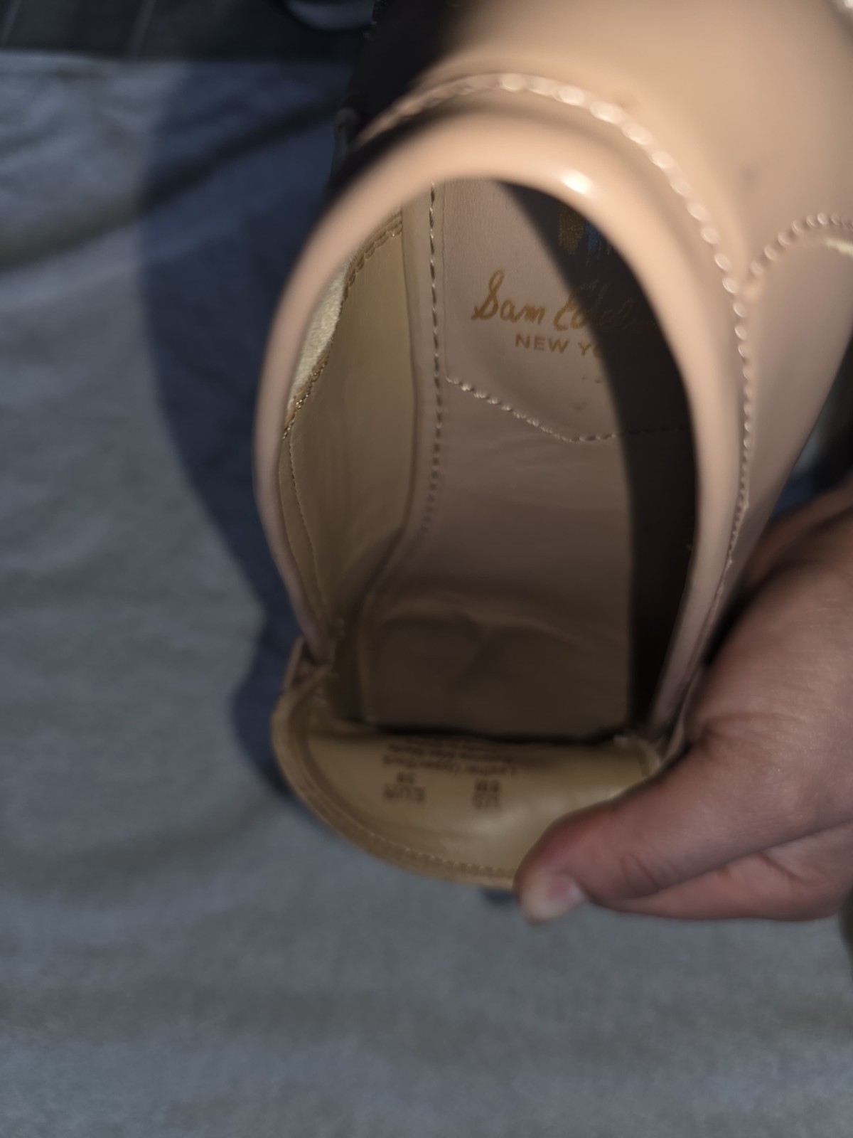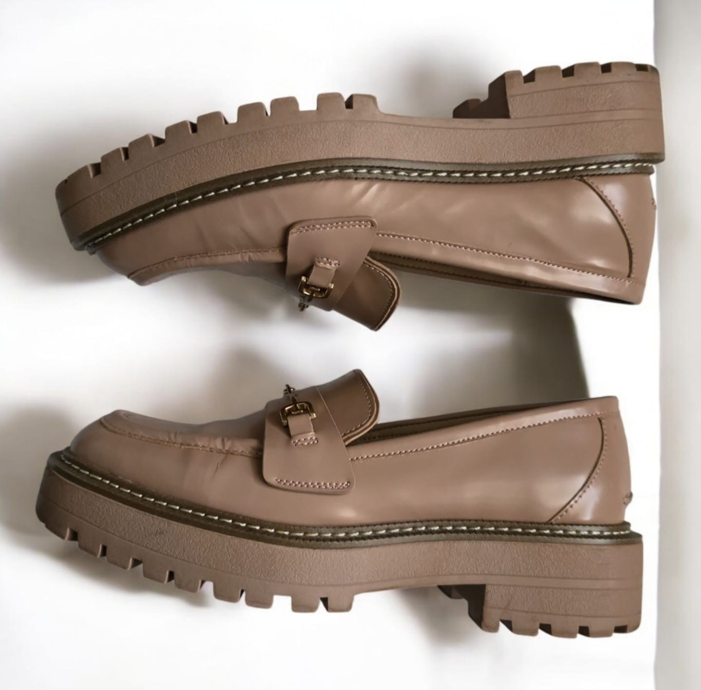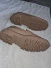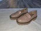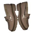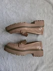 Item Details: Brand: Sam Edelman Style: Laurs Platform Lug Sole Loafer Size: 8 US Women's Color: Maple Sugar (Nude/Light Beige) Condition: Used, in excellent overall condition. They have small "scuffs" or minor marks on the sole and/or upper that are barely noticeable (see detailed photos). Material: Leather/synthetic upper with a polished finish, rubber sole. Features: Gold-tone horsebit hardware, platform design with chunky lug sole. General Description: Trendy and comfortable Sam Edelman Laurs loafers in a size 8! These shoes are perfect for adding a touch of preppy and trendy style to any outfit. They feature a striking chunky platform sole and classic gold hardware detail. The nude color (Maple Sugar) is versatile and easy to match. They have been gently used and, as mentioned, have some minor marks that do not affect their overall appearance when worn.