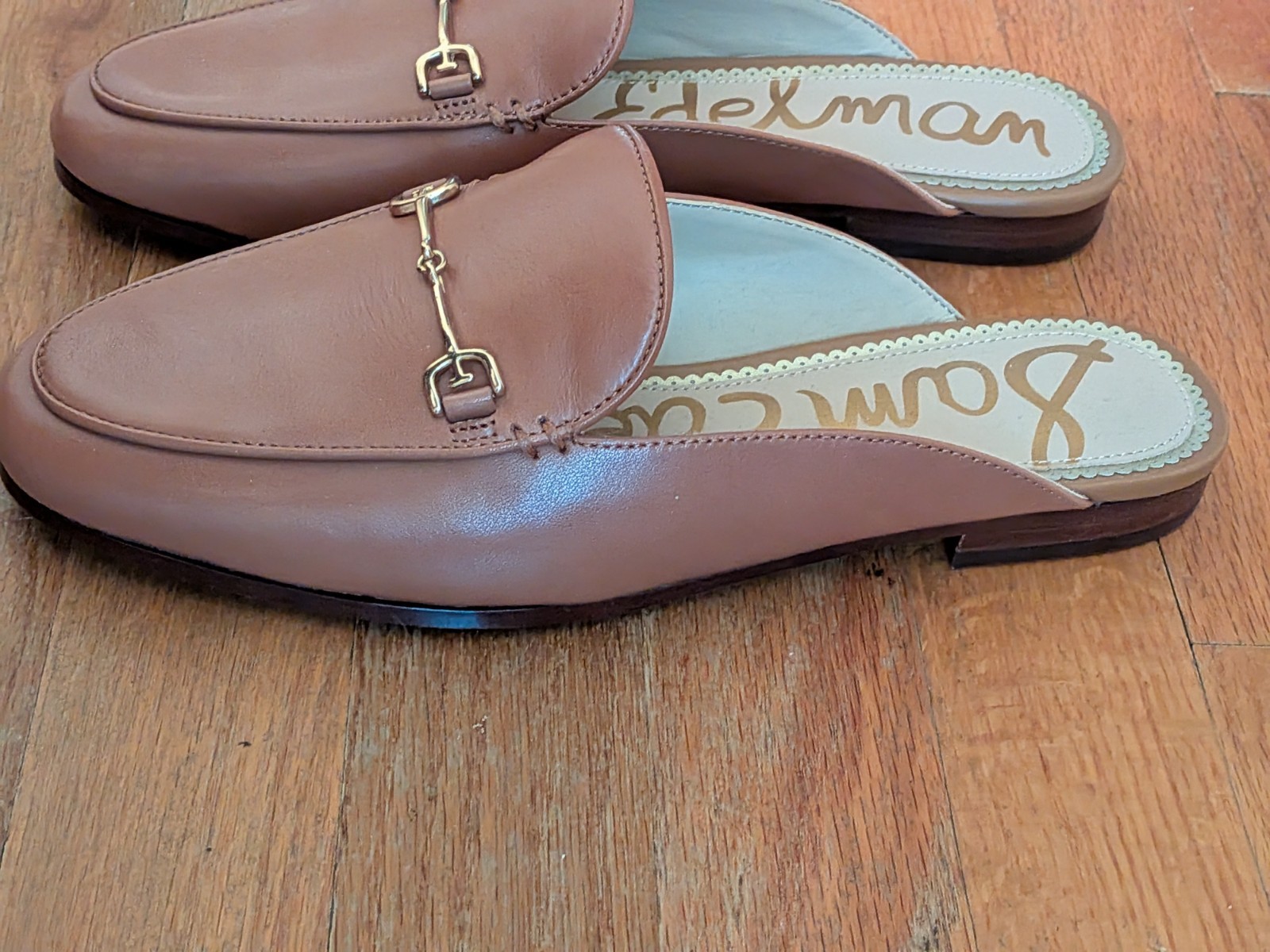 Please refer to photo for shoe color. NO BOX Shoe is size 7, brand new never worn. No Box. The Sam Edelman Linnie Bit Mule in French Sand Leather is a stylish and versatile flat shoe for women. With a classic brown color and standard shoe width, this shoe is perfect for everyday wear. The leather upper material adds a touch of luxury, making it a chic addition to any outfit. The Sam Edelman brand is known for its quality and attention to detail, ensuring a comfortable and fashionable fit.