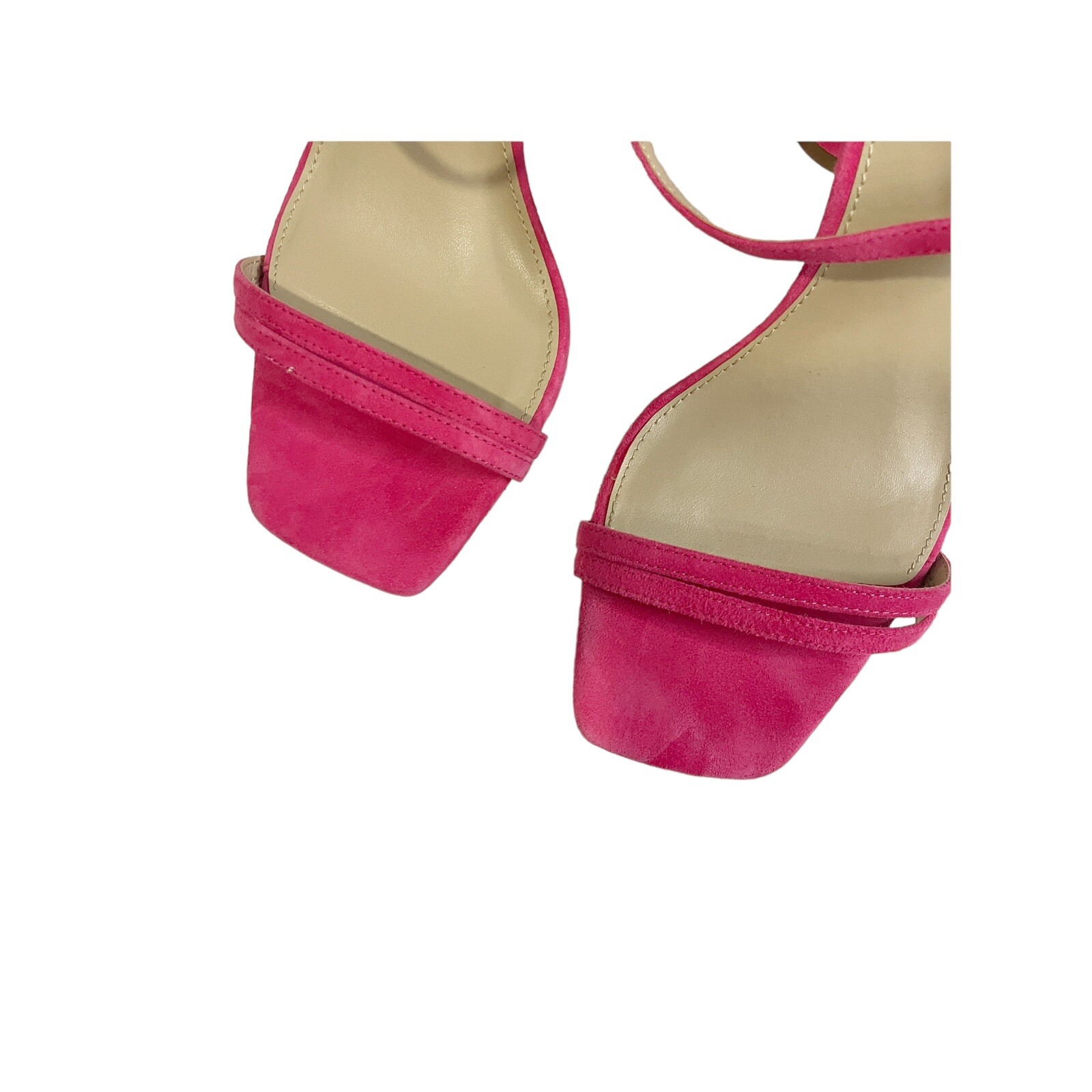 Elevate your style with these beautiful pink kit block heel sandals from Sam Edelman. The slingback design and open toe style add a touch of sophistication to any outfit. The buckle closure ensures a secure fit while the high block heel provides a comfortable and stylish lift. Made with synthetic materials and a suede upper, these shoes are both durable and fashionable. The solid pattern and preppy theme make them perfect for any occasion. Available in size 9 and with a medium shoe width, these heels are sure to become a staple in any wardrobe. new without. box 4" heel height All Measurements Are Approximate Please email us with any questions! ** LIKE THE ITEM BUT NOT THE PRICE, REASONABLE OFFERS ACCEPTED