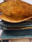 Samantha Brown Green Faux Croc Satchel w/ Matching Case Travel Set ⸻ Item Description: Elevate your travel style with this stunning Samantha Brown satchel and matching accessory case in a rich emerald green and cognac brown faux crocodile finish. This structured travel tote is crafted for durability and sophistication, featuring multiple zip compartments, gold-tone hardware, and vibrant yellow-orange signature travel-themed lining for a fun pop of color. The matching case includes built-in organization, mesh zip pockets, and a travel mirror—perfect for cosmetics, cords, or essentials on the go. Brand: Samantha Brown Bag Dimensions: Approx. 16” W x 12” H x 10” D Handle Drop: 8” Color: Deep green with cognac brown trim (faux crocodile embossed) Features: • Three spacious zippered compartments • Multiple interior organizer pockets • Vibrant signature lining with travel motif • Matching accessory case with mirror, zipper pouches, and snap closure • Gold-tone Samantha Brown branding • Structured silhouette for easy packing and chic presentation Style Tips: Perfect as a chic overnight bag, stylish carry-on, or even a statement work tote. The matching case can be used for makeup, tech gear, or travel documents—pop it into your luggage or carry solo for light days. ⸻ ⸻ Thanks for shopping with Vintage wowzers! I try to ship within 24 hours (excluding weekends and holidays). Follow me and come back often—I list new treasures daily! Have a wonderful day. XOXO, Vintage Wowsers ⸻ MAY0025