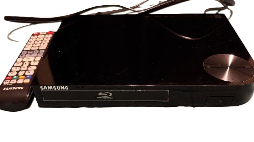 Elevate your home entertainment experience with the Samsung BD-5700 Blu-Ray DVD Player. This sleek, black device offers a high-definition 1080p output for crystal-clear picture quality. It's designed to support a variety of Blu-ray formats, ensuring compatibility with your existing collection of movies and music DVDs.The Samsung BD-5700 comes equipped with Dolby True HD technology, delivering a rich and immersive audio experience. It also features HDMI connectivity for easy setup with modern televisions. This model, manufactured in Indonesia, includes the original remote for convenient operation.