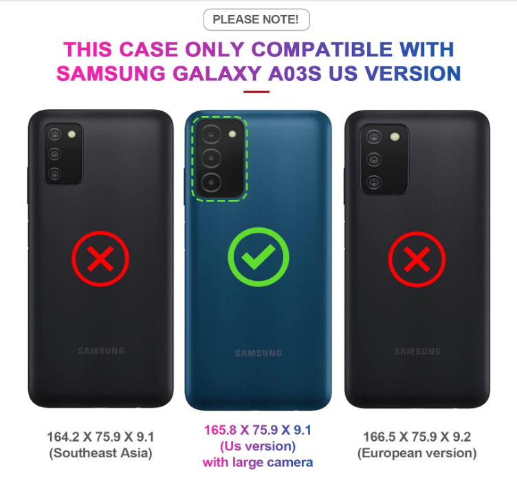 LeYi for Samsung Galaxy A03S Phone Case, Samsung AO3S Case with [2 Pack] Screen Protector, [Military-Grade] Magnetic Ring Kickstand Protective Phone Case for Galaxy A03S (6.5 Inch), Black Brand LeYi Compatible Phone Models Samsung Galaxy A03s Color Black Compatible Devices Samsung Galaxy A03S, 6.5 inch Material Metal, Polycarbonate, Thermoplastic Polyurethane About this item Compatible With: Specially designed for Samsung a03s 6.5inch. Package includes 2pcs Screen Protector Military Grade Drop Protection: Double combination of soft TPU frame and anti-scratch hard PC back achieves military grade drop protection. Perfectly passed thousands of high altitude drop tests to ensure forceful protection after an accidental drop Extra Screen and Camera Protection: Subtly enhanced 2mm lifted bezel on screen and camera lens can prevent daily scratches when you put cellphone face down. Ensuring every aspect of your phone is protected with uniquely Built in Metal Kickstand: Built in kickstand gives you the convenience to watch videos and movies hands-free with desired comfort and stability. Additional, magnetic stand can be directly stably attached to the magnetic car phone mount. You will love how convenient it is with such powerful functions Perfect Fit: All buttons and interface user-friendly design to avoid frequent disassembly. And the case perfect cutouts for speakers, camera and charging hole allow you to easy access to all features. And easy to install, just followed the directions had it done in no time . We offer FREE shipping on all orders! . We ship within Five business days of payment, usually sooner. . We use a selection of shipping services such as UPS, FedEx, USPS etc. . We only ship to the lower 48 states, no APO/FPO addresses or PO Boxes allowed. . Local pickups and combined shipping options are not provided at this time. . Your satisfaction is a wonderful reward for our efforts. Please assist us by leaving a positive review if you feel pleased with our service. . In the event that you encounter any difficulties related to your order, please do not hesitate to reach out to us directly through the Messaging system on the Ebay platform. Kindly consider opening a COMPLAINT or a RETURN REQUEST as a last resort, only after all other possible measures have been attempted and we have been unable to provide you with assistance. . We will get in touch with you within 24 hours and make every effort to ensure your satisfaction. . Please rest assured of our service quality.