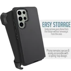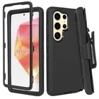 For Samsung S25/S25 Ultra/S25 Plus Defender Shockproof Case Belt Clip Holster Some Models have Built in Screen. Peel off Blue film before using the case Includes Optional Fast Charging AC Adapter and Type C Cable Select the phone model you have Samsung Galaxy S25 Has Built in Screen Samsung Galaxy S25 Plus Has Built in Screen Samsung Galaxy S25 Ultra No Built in Screen Please check to make sure you choose the right phone case for your phone model Introductions: The Premium Hybrid 4 in 1 Swivel Belt Clip Brushed Armor Rubber Impact Case Provide Luxury, Stylish and Heavy Duty Protection for your New Mobile Phone Against Scratches, Dirt,Dent and Damages. The Outer Back Cover is Made of durable and flexible silicone material. The inner layer is made of High Quality PC Material. Unique Proposition: --Design: Hybrid case is made of a shock-resistant soft silicone outer cover+hard poly carbonate inner layer+Hard PC Frame Outter+Kickstand --Belt Clip can rotate into 360 degree angles and has a protective felt liner to keep your phone screen scratch-free --Integrated kickstand on back of case for hands-free usage --Holster has a protective felt lining to keep your phone's screen safe --Precise cutouts to preserve full use of volume buttons,charger,camera,microphone,headphone jack,and all other ports --Sensitive button: Unobstructed response button soft TPU buttons are easy to access and use for a smooth experience every time you use it.