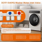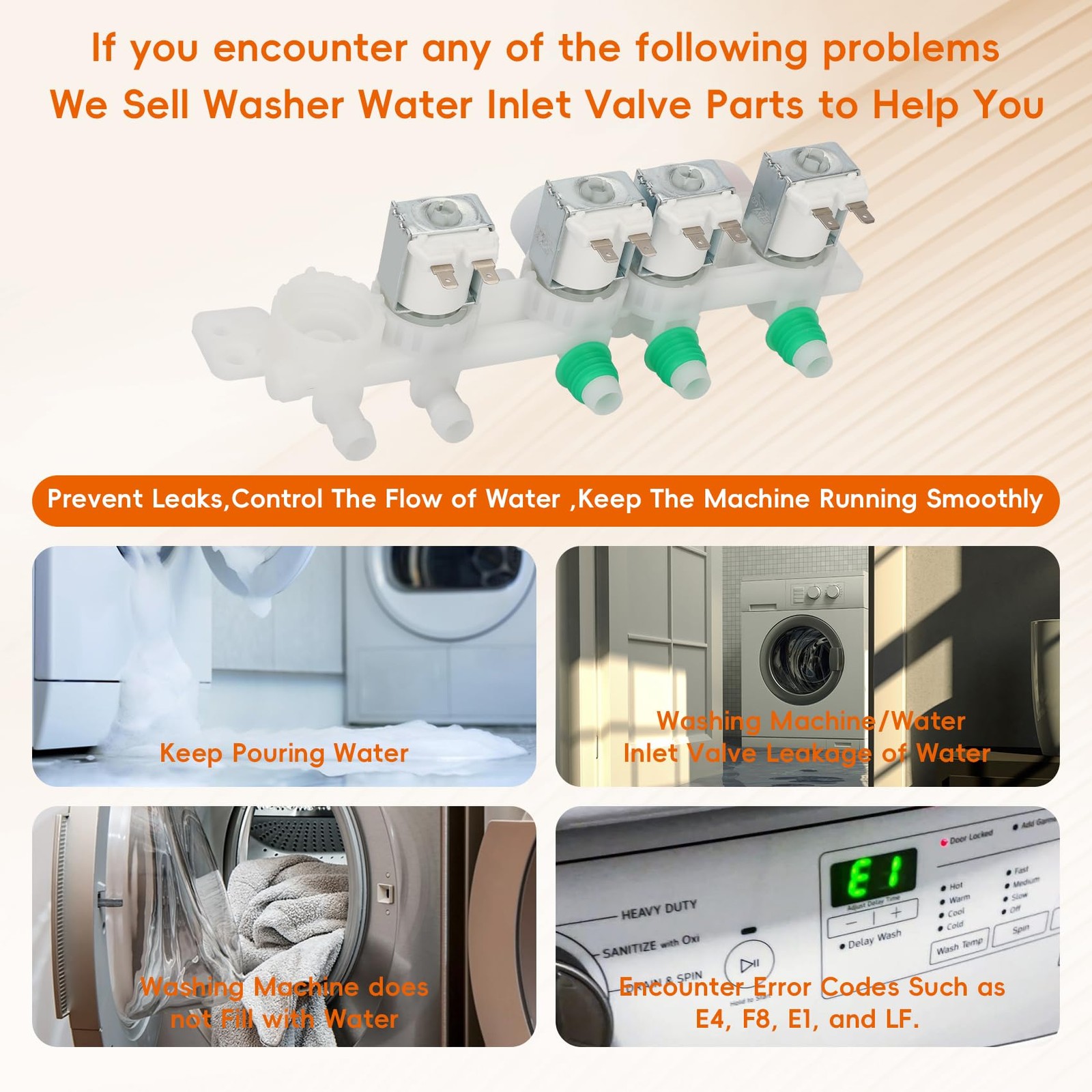 All brand descriptions above only indicate the compatibility of the product. Our Water Inlet Valve are made of high-quality ABS metal material, which is not easy to rust, and can be used for a long time through strict testing. With 4 solenoid valve design, you can precisely control the amount of water into the washing machine, prevent water leakage, and ensure the smooth operation of the washing machine. If your washing machine experiences the following problems: The water flow of the washing machine is too loud, the washing machine leaks water, the washing machine keeps filling water, the washing machine does not fill water, the relevant parts are damaged and need to be replaced, and the error code such as E4, F8, E1, LF is encountered. you can use our products to help you solve the problem and make your washing machine work normally. Products include: Single Samsung DC97-15459Q Washer Water Inlet Valve. If you have any questions, you are welcome to write to me and have a happy day! Product Dimensions:9.85 x 3.55 x 2.76 inches Item model number:DC97-15459Q Item Weight:1 pounds Color:White + Green Voltage: 110/120V Frequency: 60HZ Material: ABS Plastic + metal Manufacturer: Country of Origin:China 【applicability】DC97-15459Q Water Inlet Valve Compatible with most Samsung Washing machine: WA51A5505AC/US-00 WA51A5505AV/US-00 WA51A5505AW/US-00 WA52A5500AC/US-00 WA52A5500AV/US-00 WA52A5500AW/US-00 WA54A7305AE/US-00 WA54A7305AV/US-00 WA55A7300AE/US-00 WA55A7300AV/US-00 【Products Advantages】DC97-15459Q Adopt water inlet valve High quality ABS and metal material quality, the water inlet valve is not easy to rust, tested as per Samsung standards, Products pass rigorous testing, It can be used for a long time. water inlet valve has 4 solenoid coil valves designed. precisely control the flow of water, Prevent water leakage can ensure smooth running of your washing machine. DC97-15459Q has a voltage of 110/120V and A frequency of 60hz. Can improve the safety of washing machine use. 【DC97-15459Q REPAIR SYMPTOMS】 If you encounter, for example, the water flow of the washing machine is too loud, the washing machine leaks, The washing machine is constantly filling water, Washing Machine does not Fill with Water, the relevant parts are damaged and need to be replaced,Encounter Error Codes Such as E4, F8, E1, and LF.. Above problems, choose our Water Inlet Valve can help you solve. 【EASY TO INSTALL】It is recommended that you turn off the power supply and water of the washing machine in advance before installing the product. It is recommended that you wear work gloves. Prepare the screwdriver, pliers and other installation tools for the corresponding cutting edge, Open the back cover of the washing, Find and remove the old water inlet valve and Remove screws, pipes, and wires. replace the new water inlet valve. Follow the instructions for easy and quick replacement. 【NOTE】If you encounter any problems or doubts during the installation of the product,If you have any questions or doubts, you are welcome to write to me and I will be happy to help you.