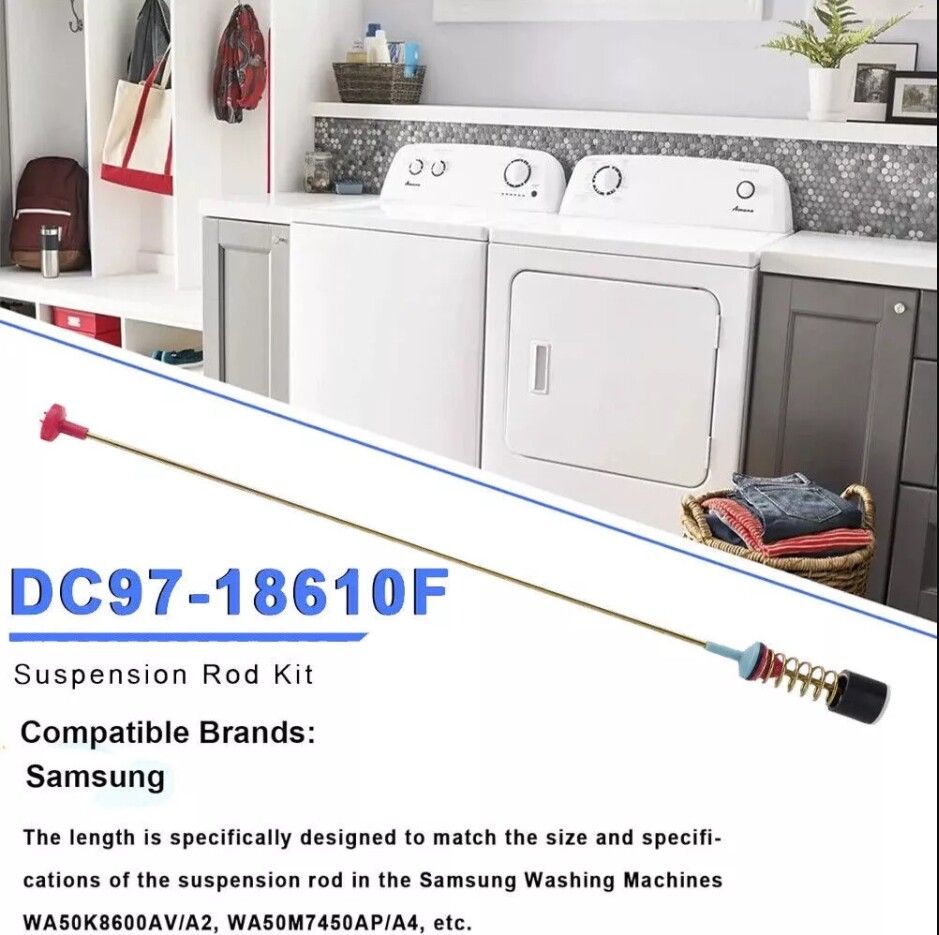 DC97-18610F Destriction: The Washer Suspension Rod DC97-18610F is an integral component of the washing machine's suspension system. It consists of a durable metal rod that connects the outer tub to the inner tub. Its primary function is to minimize vibration and noise during the spin cycle. Additionally, it ensures the stability and balance of the inner tub while the washer is in operation. Crafted from high-quality stainless steel, this suspension rod is built to withstand years of use. If your washer is experiencing excessive noise or vibrations, it may be necessary to consider replacing this crucial part. Feature: Automotiveparts_aa New Parts, Fast Fix, Revive Your Washer Now! DC97-18610F Washer Suspension Rod Kit Fits For Samsung Whirlpool Maytag Kenmore DC97-18610F Destriction: The Washer Suspension Rod DC97-18610F is an integral component of the washing machine's suspension system. It consists of a durable metal rod that connects the outer tub to the inner tub. Its primary function is to minimize vibration and noise during the spin cycle. Additionally, it ensures the stability and balance of the inner tub while the washer is in operation. Crafted from high-quality stainless steel, this suspension rod is built to withstand years of use. If your washer is experiencing excessive noise or vibrations, it may be necessary to consider replacing this crucial part. Feature: When to replace it: 4 x W11130356 Suspension Bar Kit, approximately 28.35 inches long, supports the washer tub and stabilizes it during unbalanced loads, allowing the washer tub to move while helping to minimize vibration in spin mode. If your washer loses balance and vibrates with every load, this suspension kit can do the trick, and if one or more hanger bars break, the washer will vibrate or shake. This suspension bar helps dampen the movement of the washer tub. What's In The Package: W11130356 Suspension Bar Kit Includes 4 Rods, W11130356 Suspension Bar Kit is compatible with most Whirlpool Maytag, kenmore washing machine. Replaces Part numbers: Fits Whirlpool washers: 7MWTW8500EC0,7MWTW8500EC1,7MWTW8500EC2 WTW8000DW0,WTW8000DW1,WTW8000DW2,WTW8000DW3,WTW8000DW4,WTW8000DW5,WTW8040DW0,WTW8040DW1,WTW8040DW2,WTW8040DW3,WTW8040DW4,WTW8500DC0,WTW8500DC1,WTW8500DC2,WTW8500DC3,WTW8500DC4,WTW8500DC5,WTW8500DC6,WTW8500DR0,WTW8500DR1,WTW8500DR2,WTW8500DR3,WTW8500DR4,WTW8500DR5,WTW8500DW0,WTW8500DW1,WTW8500DW2,WTW8500DW3,WTW8500DW4,WTW8500DW5,WTW8500DW6,WTW8700EC0,WTW8700EC1 Fits Maytag washers: 7MMVWB835EW0,7MMVWB835EW1,7MMVWB855EC0,7MMVWB855EC1,7MMVWB855EC2,7MMVWB855EC3 MVWB835DC0,MVWB835DC2,MVWB835DC3,MVWB835DC4,MVWB835DC5,MVWB835DW0,MVWB835DW1,MVWB835DW2,MVWB835DW3,MVWB835DW4,MVWB835DW5,MVWB855DC0,MVWB855DC1,MVWB855DC2,MVWB855DC3,MVWB855DC4,MVWB855DW0,MVWB855DW1,MVWB865GC1,MVWB865GW1,MVWB855DW2,MVWB855DW3,MVWB865GC0,MVWB865GW0 Fits Kenmore washers: 11028132410,11028132412,11028132413,11028132414,11028133410,11028133411,11028133412,11028133413,11028133414,11029132411,11029132412,11029132413,11029133411,11029133412,11029133413 Package included: 4x Washer Suspension Rod Kit DC97-18610F Suspension Rods Kit Installation Tips: 1. Unplug the samsung washer before installing this part. Wear work gloves to protect your hands. 2. To complete this multi-step repair, you'll need a putty knife, a wood plank, a piece of duct tape, a screwdriver, and lithium grease. 3. Be very careful of the grease used on the pivot points. It is very difficult to remove. The replacement process takes about 20 ~ 30 minutes. 4. Make sure you use lithium grease where they mount at the top and bottom to avoid future wear and squeaks. Certificates of our product: Our Factory: Item Specifics Brand CarBole Type Suspension Rod Kit Set Includes Suspension Rod Kit Power Source Electric Model DC97-18610F Color Multicolor Installation Built-In/Integrated Suitable For Agitator Washing Machine High-Efficiency/Impeller Washing Machine Capacity Less Than 5 lb Compatible Brand Samsung Compatible Model DC97-18610F DC97-18610A AP6243905 PS12085154 MPN DC97-18610FCM Features Washer Number of Items in Set 4 Bundle Description Washing machine spring hanger Replace part number W11217817, W11159470, W11226768 Material Metal Parts, Plastic Finish Glossy Item Height 28.3 in Payment [ Policy: The above tab label style can be modified in left Basic - Footer Policy section. And this area is the details contents of your policies. You can add a banner for this policy as header and add text descriptions here. The text descriptions can be different Font Size, Font Color, Style and even graphics and icons are also accepted. ] Shipping [ Shipping: This is the contents of your Shipping. You can add a banner for this Shipping as header and add text descriptions here. The text descriptions can be different Font Size, Font Color, Style and even graphics and icons are also accepted. ] Returns [ Return: This is the contents of your Return. You can add a banner for this Return as header and add text descriptions here. The text descriptions can be different Font Size, Font Color, Style and even graphics and icons are also accepted. ] Contact Us [ Contact Us: This is the contents of your Contact Us. You can add a banner for this Contact Us as header and add text descriptions here. The text descriptions can be different Font Size, Font Color, Style and even graphics and icons are also accepted. ] Automotiveparts_aa New Parts, Fast Fix, Revive Your Washer Now! DESCRIPTION PAYMENT SHIPPING RETURN POLICY CONTACT US Shop Category Store Home Ignition Coils ◈ Ignition Coils Series Automotive Tools & Supplies Exterior Parts & Accessories Home&Garden Home Major Appliance Business & Industrial Car & Truck Parts & Accessorie Motorcycle & Scooter Parts Boat Parts Other Hot Item 3x For Walbro Poulan Craftsman Chainsaw Primer Bulb 530071835 530047213 188-513 USD 8.22 4X Primer Fuel Bulb Pump For Poulan Ryobi Homelite Toro Craftsman Blower Trimmer USD 6.99 W10383615 Refrigerator Thermistor With Clip Fits for Wh