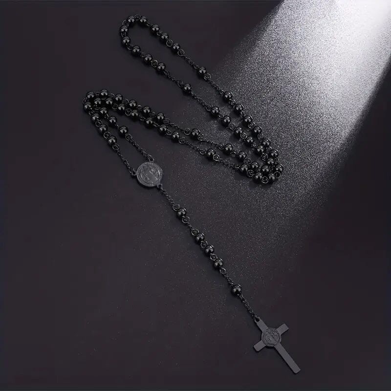 Title San Benito Golden Plated Stainless Steel Priest Saint Benedict Rosary Necklace PRODUCT DESCRIPTION Enhance your spiritual journey with the San Benito Golden Plated Stainless Steel Priest Saint Benedict Rosary Necklace. Expertly crafted to combine durability and elegance, this beautiful piece features a striking Priest Saint Benedict design, symbolizing protection, faith, and divine blessing. Constructed from high-quality stainless steel, this rosary necklace offers exceptional strength and resistance against tarnish, ensuring it remains a treasured accessory for years to come. The golden plating adds a refined touch of sophistication, making it suitable for both men and women seeking a meaningful and stylish religious symbol. Designed as a versatile Y-shaped necklace, it comfortably complements any wardrobe and is perfect for daily wear or special religious occasions. Whether as a personal relic or a thoughtful gift, this San Benito Golden Plated Stainless Steel Priest Saint Benedict Rosary Necklace embodies faith and protection in a timeless design. Premium Material: Durable stainless steel with stunning golden plating Design: Iconic Priest Saint Benedict symbol Type: Elegant Y-necklace suitable for all genders Perfect For: Daily faith expression, religious ceremonies, or as a meaningful gift Embrace your spirituality and make a powerful statement of faith with this exquisite rosary necklace. Order now to enrich your collection or to share divine protection with loved ones. Powered by