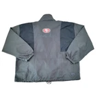 Women's WEAR by Erin Andrews Charcoal San Francisco 49ers Popover Packable Half-Zip Jacket size Large, in excellent preowned condition. Long sleeve Brand: WEAR by Erin Andrews 1/2-Zip Lightweight jacket suitable for mild temperatures Olympic collar Elastic cuffs and hem with adjustable toggle Logo on front and back Can be converted to bag when not in use Side to side: 26" Length: 25" Please see pictures for condition