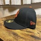 Low profile cap Represent the San Francisco Giants with this authentic New Era 59FIFTY cap, a must-have for any true fan. Crafted with precision, it features the classic black colorway accented with the team's iconic orange, designed to capture the spirit of the Giants and the elegance of the game. Ideal for game days or casual wear, this cap is a size 7 5/8, ensuring a comfortable fit for most. It's part of the Major League Baseball's exclusive on-field collection, promising both quality and durability, making it a timeless addition to any baseball enthusiast's collection.