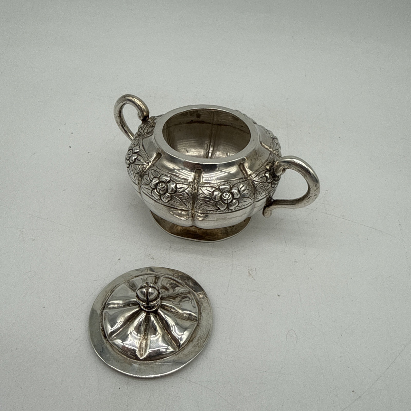 The Sanborns Sterling Silver Creamer and Covered Sugar set is a luxurious and elegant addition to any dining table. Made in Mexico, the craftsmanship and quality of the sterling silver composition shine through in the intricate design. This 9.76 troy ounce set is not only functional but also a beautiful decorative piece for collectors of antiques and silverware. The Sanborns brand ensures a level of excellence and reliability in this exquisite set.