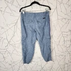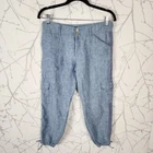 Sanctuary x Anthropologie Blue Chambray 100% Linen Cargo Joggers mid rise style tags: sustainable, breathable, vacation, linen, utility Women's 26 Waist: 30" Rise: 8.5" Inseam: 25" Good used condition: no rips, marks or stains. No problems to report.