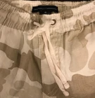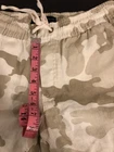 Sanctuary x Anthropologie Carefree Camouflage 100% Linen Cargo Pants Extra Small Natural motif cameo Cool toned cream, sand, tan and taupe color 100% linen Durable and soft, these cargo pants deliver a chic, utility-inspired twist to everyday ensembles Elastic and adjustable drawstring waist and ankle cuffs Side slant and cargo pockets Back patch pockets Pull-on styling Pre-loved gentle condition See pictures for details and measurements (approx.) Comes from a dog-friendly and smoke-free home Welcome offers