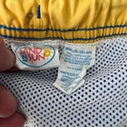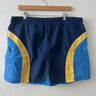 Sand N Sun Mens 36/38 L Yellow Blue Lined Bathing Suit Swim Trunks. Swim Trunks Are In Excellent Used Condition! No Holes Or Stains! - Elastic drawstring waist - Brief lining - Side pockets Measurements: Waist one side 19": Inseam: 4.5" Front Rise: 14" Back Rise: 17" Fabric: 100% Nylon Bundle & Save on shipping Please compare the measurements to shorts you own to confirm fit.
