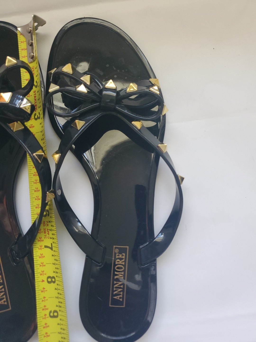 This Black Sandal in US Size 9 is a stylish and casual option for women. With a low heel height and slip-on closure, it offers comfort and convenience. The solid black color and flat heel style make it versatile for summer occasions. The synthetic upper material ensures durability, while the brand Ann More provides a quality product. Perfect for everyday wear or adding a touch of sophistication to your outfit, this sandal is a practical and chic choice for any woman's wardrobe.