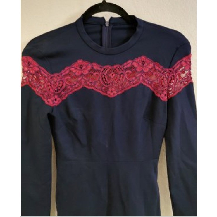 A chic black sheath dress with eye-catching red lace detailing across the shoulders and neckline. This dress features long sleeves and a flattering silhouette, perfect for adding a touch of sophistication to your wardrobe. The back closure ensures a seamless look, and the unique lace insert provides an elegant accent. Style: Sheath, Bodycon Dress Length: Knee Length Department: Women Sleeve Length: Long Sleeve Pattern: Solid Occasion: Party/Cocktail, Workwear Material: Viscose Blend, Rayon Blend, Polyester Blend Fabric Type: Knit Theme: Paris Neckline: High Neck Season: Fall, Winter, Spring Sleeve Type: Long Sleeve Closure: Zip Keywords: Sandro Paris Dress, Black Sheath Dress, Red Lace Dress, Long Sleeve Dress, Women's Fashion, Designer Dress, Elegant Dress, Cocktail Dress, Party Dress, Sophisticated Style, French Fashion, Size 1 Dress, Chic Dress **Sold by a Proud Military Family** ~10% of every item I sell is donated to our charity - Veterans Community Project. Please visit my store for all the items I have listed to help this great cause. If you loved this item, please visit my store for more items like it! Please remember to share the love with a positive feedback! • I ship within 2 business days • All items come from a pet-friendly, smoke-free home