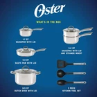 Store New Arrivals Add to Favorite View Feedback Contact Sangerfield 12 Piece Stainless Steel Cookware Set W/Kitchen Tools Description Item model number 82952.12RR Global Trade Identification Number 00085081061331 Closure Material Glass Color Stainless Steel Included Components One 1.7-quart stainless steel saucepan with lid, one 3.2-quart stainless steel saucepan with lid and steamer insert, one 4.3-quart stainless steel sauté pan with lid, one 6.5-quart stainless steel Dutch oven with lid, one nylon spoon, one slotted nylon turner, and one nylon ladle Material Stainless Steel Country of Origin China Is Dishwasher Safe Yes Item Weight 15.87 pounds Is Oven Safe No Handle Material Stainless,Stainless Steel,Steel Size 12-Piece Cookware Set Material Type Free PFOA Free, PFAS Free, Cadmium Free, Lead Free, PTFE Free, PFOS Free, APEO Free, Nickel Free, Bisphenol-A (BPA) Free Special Feature Dishwasher safe Compatibility Options electric,gas,induction,induction stovetops Number of Pieces 12 WHAT'S IN THE BOX: One 1.7-quart stainless steel saucepan with lid, one 3.2-quart stainless steel saucepan with lid and steamer insert, one 4.3-quart stainless steel sauté pan with lid, one 6.5-quart stainless steel Dutch oven with lid, one nylon spoon, one slotted nylon turner, and one nylon ladle EVERYDAY FAMILY FAVORITES: Complete collection of pots, pans, and cooking utensils to cook your family's favorite meals. Perfect for sautéing, simmering, boiling, steaming, and more. ENCAPSULATED BASE: Stainless steel construction with encapsulated aluminum core ensures efficient and consistent heating to cook food evenly MIRROR-POLISHED EXTERIOR: Beautiful stainless steel exterior resists rust and discoloration and adds luster to any kitchen INDUCTION SAFE: Safe on gas, electric, halogen, glass, and induction stovetops Designed with utility and beauty in mind, the Oster Sangerfield 12-piece Stainless Steel Cookware Set with Kitchen Utensils is a collection of useful pots, pans, and cooking utensils to serve up family favorites and new recipes every day. Constructed from mirror-polished stainless steel, each pot and pan has an encapsulated aluminum base that distributes heat efficiently to cook food evenly. The beautiful polished exterior resists rust and is easy to clean, perfect and convenient for everyday use. Safe to use on all cooktops, each piece feature dual-riveted handles for a safe and comfortable grip when lifting and serving. The tempered glass lids provide visibility to help monitor cooking progress. The set comes with three nylon cooking utensils that do not scratch and scrape the cookware's interior. Each cooking tool has an ergonomic handle for a light but comfortable grip when mixing and serving. Dishwasher safe. Do not put in a conventional or microwave oven. ABOUT US We offer the best prices around on high quality products. Our E-store includes media such as books, movies, music and games while offering electronics, toys, sporting apparel, clothing, tools, general home, garden items and more. SHIPPING We are always working hard to ensure your package arrives as soon as possible. Please understand that some factors like weather, high postal traffic, and the performance of shipping companies are outside of our control. We offer free shipping to the lower 48 states and ship within 2 business days of payment, usually sooner. We do not accept P.O. Boxes. Please provide a physical address. For shipping outside of the continental USA, we only use eBay's Global Shipping Program.The item is shipped to KY and then sent to the rest of the world. International customers are responsible for all duties and taxes. Continue to check out in order to calculate costs for shipping the item to your country. Messages regarding eBay's Global Shipping Program MUST be directed at eBay EXCLUSIVELY. RETURNS We offer a 30-Day Return Policy on items which you are not completely satisfied with. You have the option for a full-refund or an exchange of the item. No returns are available on items shipped outside of the USA. PAYMENT We accept PayPal. CONTACT US This page content is yet to come Please ad us to your favorite seller and visit again later Thank You CUSTOMER SATISFACTION We try our very best to make sure every customer is completely satisfied. If there's a problem, message us! We're happy to help. WE ACCEPT Copyright © 2021 AutoDS. | All Rights Reserved