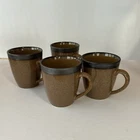 Set of 4 Sango Cocoa coffee or tea mugs. (I do have another set of four available if you would prefer 8). These are beautiful rich brown and the rim is sort of a gunmetal dark silvery color. They are lovely! Please see photos. I do not see chips or flaws. This is Set A