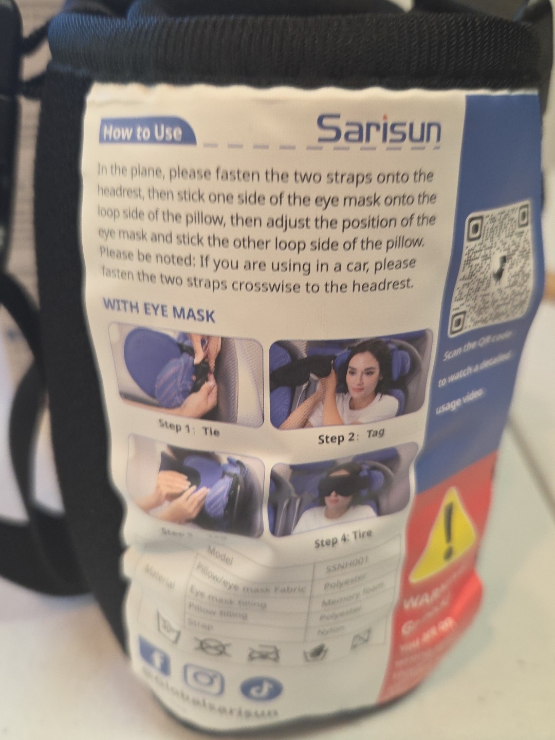 The Sanisun airline Travel Pillow is a neck pillow designed by the brand Sarisun. It is made in China and is specifically crafted for travel purposes. This pillow provides support and comfort for the neck during long journeys, helping to alleviate any discomfort or stiffness. With its durable construction and ergonomic design, the Sanisun Travel Pillow is a reliable and convenient accessory for those who prioritize comfort and relaxation while on the go. Shelf 2