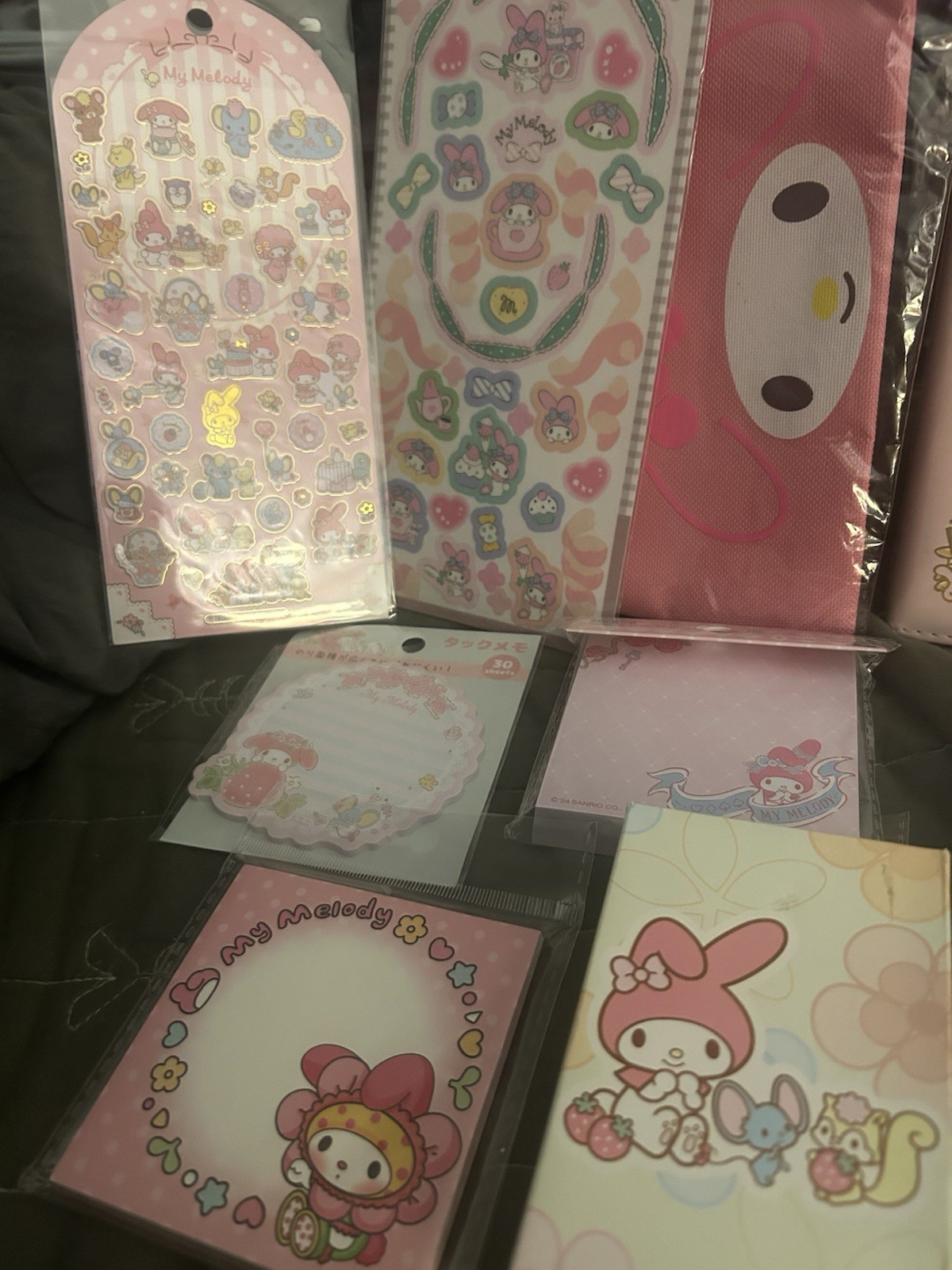 The Sanrio My Melody Stationary Set is a limited edition writing set featuring the beloved character My Melody from the popular Japanese franchise. The set includes various types of paper and pens in a pink color scheme, perfect for fans of animation and anime. With a theme centered around the adorable character My Melody, this stationery set is a must-have for collectors and enthusiasts of all ages. 1) 2 sticker sets 2) 4 sticky note pads 3)roll of stickers 4) hanging ornament 5) mystery pen 6) pencil case 7) mini binder