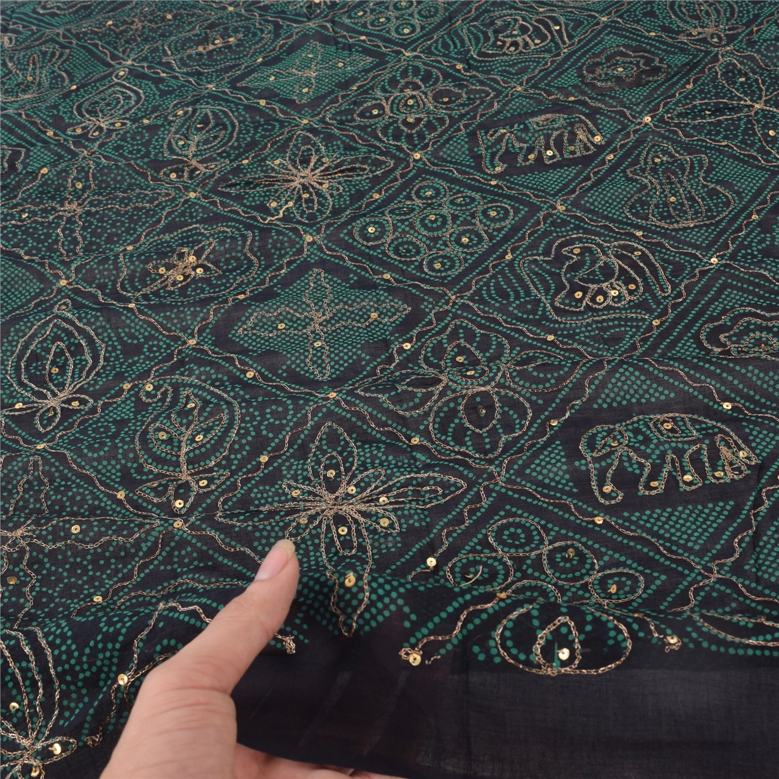 Welcome To World's Best Vintage Saree Store. Experience the best of Indian Fabric Heritage! About this item •Sparkling Black Colored Pure Cotton Hand Embroidered & Printed Long Scarf/Dupatta •Allover Dupatta Has Floral, Paisley, Pot, Elephant Design Embroidered With Golden Zari Work And Embellished With Golden Sequins Work. • •This Item's Beauty Factor •Lovely Zari Woven Work With Various Design On Pure Cotton Base Fabric Is Really Enhancing The Beauty Of The Dupatta THE ITEM COLOR OR SHADE MAY BE DARKER OR LIGHTER THAN THE PICTURE.' Sparkling Black Colored Pure Cotton Hand Embroidered & Printed Long Scarf/Dupatta. Allover Dupatta Has Floral, Paisley, Pot, Elephant Design Embellished With Golden Zari Work, Golden Sequins Work. This Item's Beauty Factor Lovely Zari Woven Work With Various Design On Pure Cotton Base Fabric Is Really Enhancing The Beauty Of The Dupatta This Dupatta/Stole Can Be Used For Various Crafting Ideas Too. Use It For Dress Designing, As A Throw, As Window Dressing, Upholstery, Table Linen And Much More. Let Your Creative Juices Flow. Shipping Note: International Buyers Please Note: Import Duties, Taxes, And Charges Are Not Included In The Item Price Or Postage Cost. These Charges Are The Buyer's Responsibility. Please Check With Your Country's Customs Office To Determine What These Additional Costs Will Be Prior To Bidding Or Buying. Buyer Will Pay Custom Duty/Tax. It Is Calculated And Charged Differently By Every Country. As A Seller I Do Not Have Any Control Over It. VAT Or Sales Tax Is Calculated By The Platform At The Time Of Checkout. Customs Charge Is Payable At The Time Of Delivery.' SKU: DC-43734 Item Details Embroidery : Zari Work Texture : Soft Transparency : Sheer Width : 45 Inches/114.30 Cms/3.75 Feet/1.25 Yards/1.14 Meters Length : 74 Inches/187.96 Cms/6.17 Feet/2.06 Yards/1.88 Meters Fabric : Pure Cotton Color : Black Weight : 0.152 Department : Womens Manufacturer : Sanskriti Hsn : 6204 Burn Test : Keeps Burning : Yes Melts : No Smells Like Hair : No Ash Black : No Drip: No Result =Pure Cotton Fabric THE ITEM COLOR OR SHADE MAY BE DARKER OR LIGHTER THAN THE PICTURE. Care Instructions for Silk Items: 1. If there is any smell that you want to remove :- a. Horizontally plate the saree and dip it in 1/4 th bucket of water with 6 to 7 drops of fabric softener for 10 minutes and then wash it in the plating form with just water. b. Do not Squeeze or Tumble Dry, just spread and leave it to dry naturally. 2. If you want to wash it properly :- a. Horizontally plate the saree and dip it in the mild detergent, grip the saree and move it up and down in detergent water with your hands and then wash it in the similar way with just water. b. Do not Squeeze or Tumble Dry, just spread and leave it to dry naturally. For Beaded / Embroidered Items :- 1. Wash gently with a mild detergent. 2. Do not squeeze or tumble dry as beads will fall out. 3. Leave it to dry naturally. Discount We love giving you discounts for buying more in single order! Check out our store to find various offers. If you are buying more than 20 items together, message us for customized deals About Sanskriti India Hi! My name is Jyoti. I am a New Delhi based collector and seller of unique Indian Vintage items. I have been selling vintage Indian items on eBay for more than 7 years and have been fortunate to be recognized as the best seller on eBay for stunning Indian fabrics like Sarees, Dupattas, Embroidered patches, Tops etc. On May 2016, I was also awarded India's highest award for best online exporter from the Honourable President of India! At my store, you are assured of highest quality merchandize and service you can find on ebay. I am very selective with my collection and keep only the freshest items on this store. Any customer issues are taken with utmost seriousness. We have been very protective of our buyer's experience. Which is the reason we are consistently the highest quality seller on eBay for years I hope you will find the perfect piece of Indian vintage heritage on my store. I love sprinkling a bit of India around the world. Thanks for sharing these joys with me. Namaste!! Shipping Information:- For USA: 1. If you shop for more than US $60, you will get the highest level shipping service, which offers up to 95% package tracking facility. 2. If you shop for US $25 - $60, you will get medium level shipping service, which offers 70% - 80% package tracking facility. 3. If you shop for less than US $25, you will get standard shipping service, which offers 50% - 65% package tracking facility. For rest of the world: 1. If you shop for less than US $25, your parcel will be shipped through standard India Post service, which offers 50% - 65% package tracking facility. 2. If you shop for more than US $25, your parcel will be shipped through Chips Air Express or Aramax, which offers 70% - 80% package tracking facility. 3. Expedited shipping available only on request. Shipping Policies: 1. We ship your items within 24 hours of receiving confirmed payments. 2. If you choose standard shipping then your items are shipped via REGD. AIR MAIL (delivery in 2-4 weeks). 3. Expedited shipping (delivery in 3-4 days) upgrade available for an additional $10 per parcel subject to a minimum of $25 shipping cost. Please ask me before paying to get an upgrade. 4. For a combined parcel having more than 7 items - I upgrade the parcel automatically to expedited without additional charges. Upgrade is also available for lesser number of items depending on destination and item cost. Offer not available for trims and appliques. How to avail discounts? For receiving discounts please follow one of the steps below: 1. In case you are purchasing multiple items in a single day/session, add all items to cart and checkout. This will apply your discount automatically. 2. In case you are purchasing multiple items in multiple days/sessions and trying to combine in a single parcel, please ask me for an invoice before you p