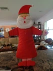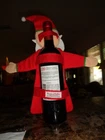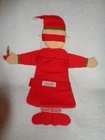 Santa Claus Wine Bottle Cover 15.5" Red Stuffed Fabric with S.C. embroidered on chest. Three fabric straps on back slide over bottle to make him stand. Fabric tag on back says: House Of Hatten Made in Philippines 65% Polyester 35% Cotton. Vintage Rare hard to find Christmas Decoration in Excellent condition from a smoke-free home. (Bottle of wine not included)