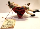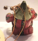 You are bidding on this vintage 1989 Santa Claus sitting Christmas ornament designed by Denise Calla for House Of Hatten. This is approximately 5 1/2 inches tall and 3 inches wide. It is either carved from wood or a wood type resin. This has the original hang tag and it is signed on the bottom "HOH 1989". Please view all photos and ask questions prior to placing your winning bid. This will be sent with tracking and full insurance. Thank you