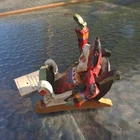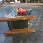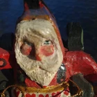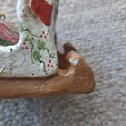 Santa Ornament House Of Hatten Denise Calla Folk Art Santa on Sleigh 1989. Nice condition. Tiny paint loss on sleigh. He measures 4.5". Ship is 4.99. Cute