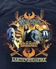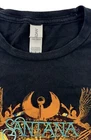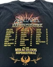 This Santana Earth, Wind, & Fire Miraculous Supernatural Tour T-shirt in size L features a crew neck, short sleeves, and a graphic print on a black cotton knit fabric. The double-sided tee showcases 2022 Miraculous Supernatural tour with Santana, Earth, Wind, & Fire. It is machine washable and part of the Gildan brand. This is a versatile and stylish choice for unisex adults who appreciate music and unique graphic designs.