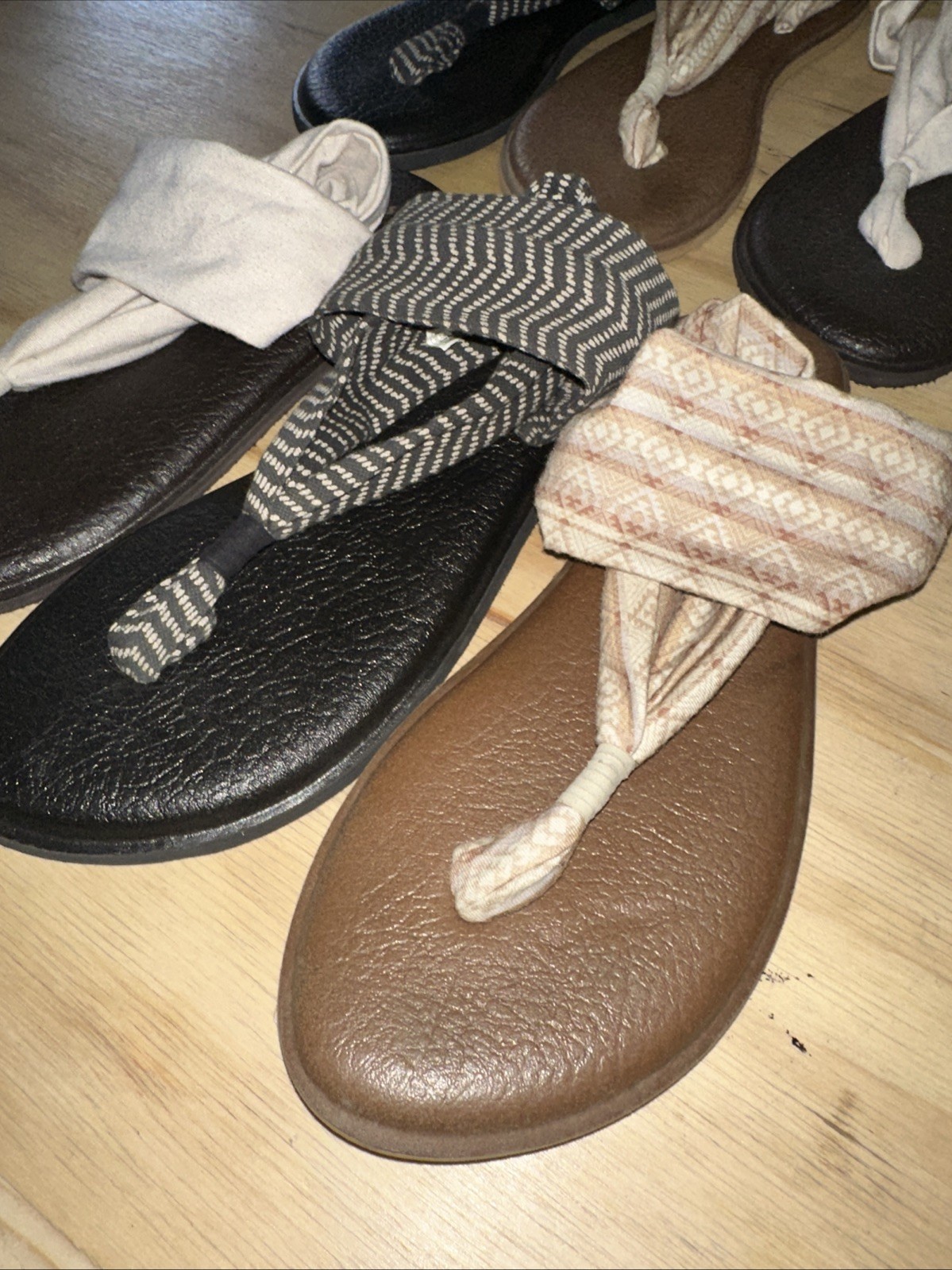 See photos for details item in photos is item that ships fast lot of 3 sets of sandals mix color and pattern all 3 pairs are size 10