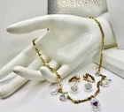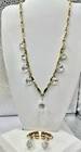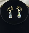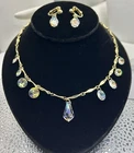 Sparkling Sarah Coventry Set ~ “Crystal Fire” ~ Golden Necklace With Radiant Rivoli Aurora Borealis Rhinestones & Center Teardrop Dangle ~ Matching Clip Earrings Each Feature A Single Sparkling Teardrop ~ Signed Pieces ~ See Photos ~ Displays Not Included ~ One Rivoli Stone On Necklace Is Chipped But Still Glows Brightly