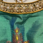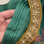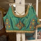 19inches arm pit to arm pit. 14 inches from shoulder This stunning Saree Blouse is a must-have for any fashion-forward woman. Made from high-quality Brocade Silk, this designer blouse comes in a beautiful green color that will make you stand out from the crowd. The blouse is perfect for customization and can be taken out in altered to fit your style. This Choli style blouse is perfect for any occasion, whether it's a wedding or a night out with friends. Made in India, this Saree Blouse is a true representation of traditional Indian clothing. Don't miss out on the opportunity to add this beautiful piece to your wardrobe.