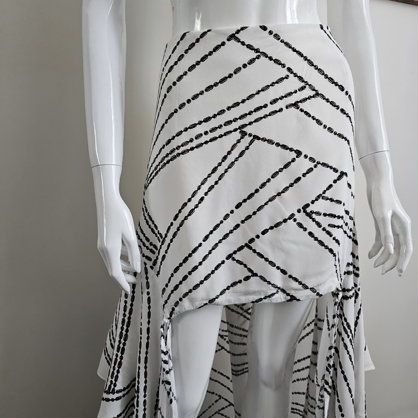 In good preloved condition Sass & Bide My Perfect Eden High Low Skirt White with Brown and Black Chain Print. Garment features: Lightweight and floaty. Hi-lo design. Draped panels at each side. The skirt curves down from a natural waist position to mini length at the front and maxi length at the back.Self ties at the front and an invisible zip at centre-back. Lined above the knee. Viscose Rayon blend. Measurements with garment laid flat Waist: 47cm Hips: 60cm Length: 43cm - 103cm - 113cm Due to lighting settings in different devices, colours may differ slightly. Thank you for embracing local independent designers, pre-loved and re-sold fashion. Purchasing this item continues its narrative and helps the circular economy. Every small step counts, and you're part of a larger movement working towards a more sustainable future. I offer combined postage (Australia only). If you wish to buy 2+ clothing items from my store, add all items to a basket and request a combined shipping invoice. Reach out if you need help with combining your order. All items are sent with tracking using Australia Post.