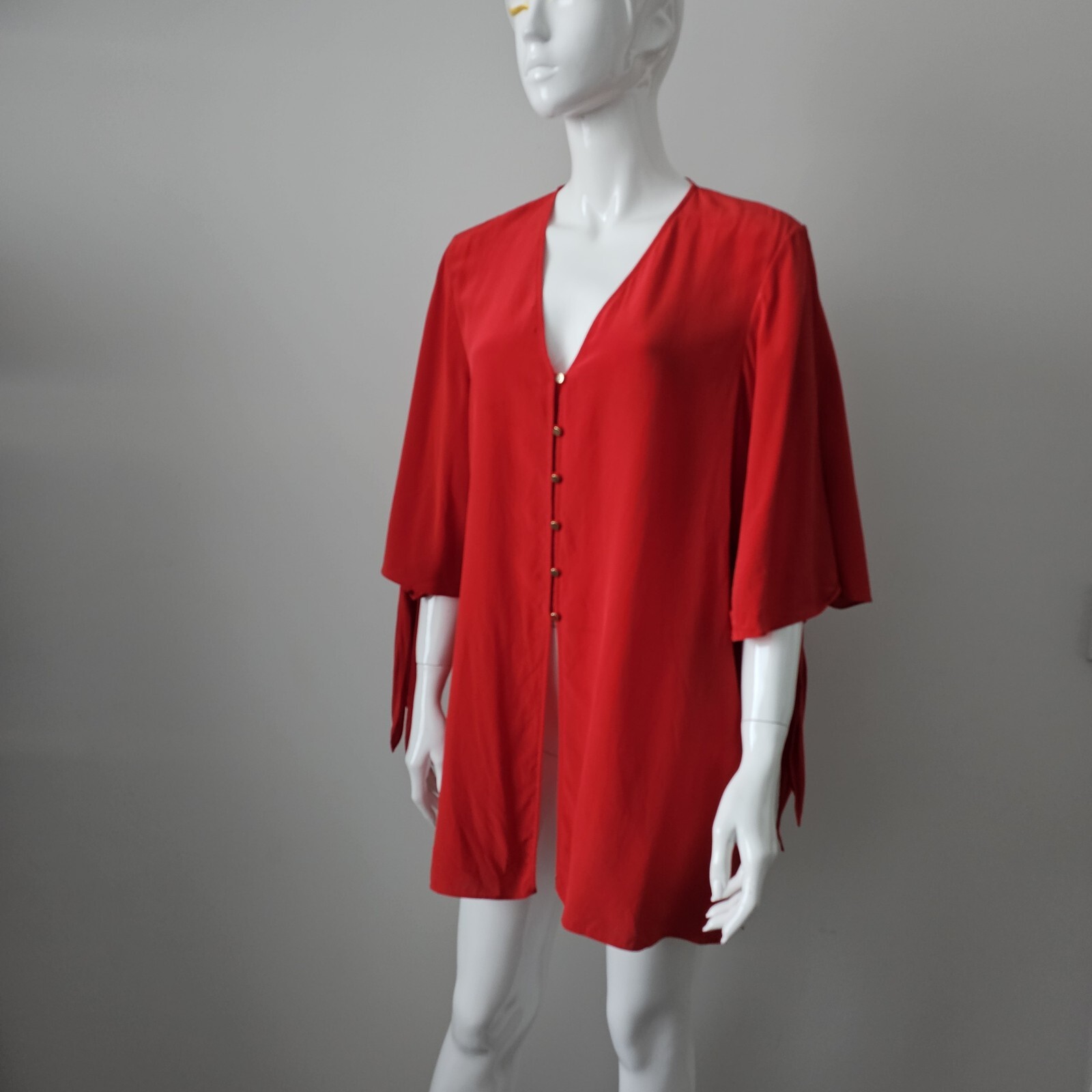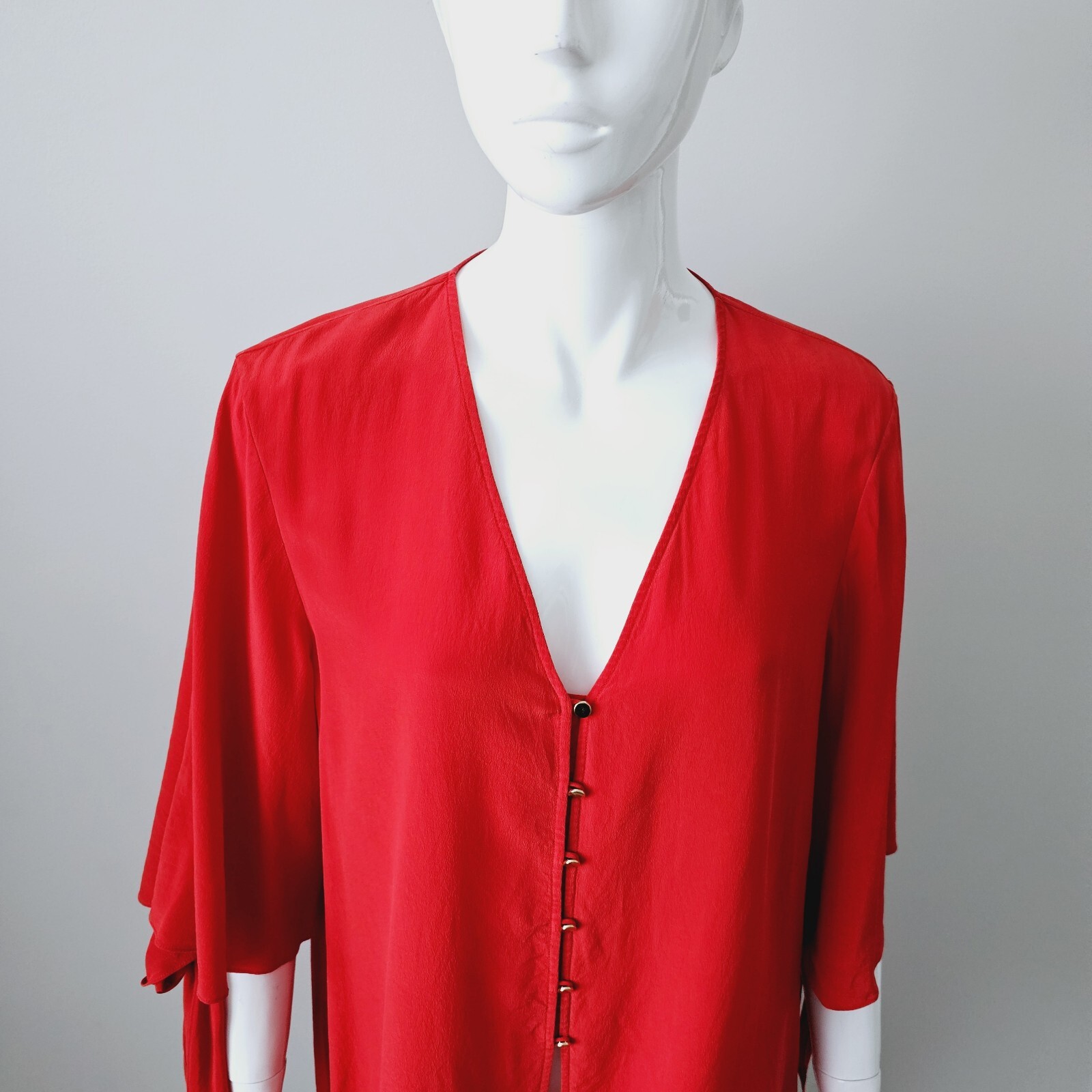 In good preloved condition Sass & Bide Red Silk Blouse Size 12 Oversized Rosaire Garment features: V Neck Gold buttons Tie elbow length mid split sleeves Split sides Relaxed fit 100% silk Measurements with garment laid flat and unstretched Bust: 55cm Waist: 57cm Length: 76cm Upper Arm Width: 26cm Due to lighting settings in different devices, colours may differ slightly. Thank you for embracing local independent designers, pre-loved and re-sold fashion. Purchasing this item continues its narrative and helps the circular economy. Every small step counts, and you're part of a larger movement working towards a more sustainable future. I offer combined postage (Australia only). If you wish to buy 2+ clothing items from my store, add all items to a basket and request a combined shipping invoice. Reach out if you need help with combining your order. All items are sent with tracking using Australia Post.