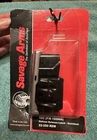 This magazine is designed for use with Savage Arms handgun models and holds up to two rounds. The outer shell material is made from durable steel and it features a bottom release latch. This particular model is designed for the Savage 16C Rifle and is made in the United States. The magazine is in excellent working condition and is ready for use.