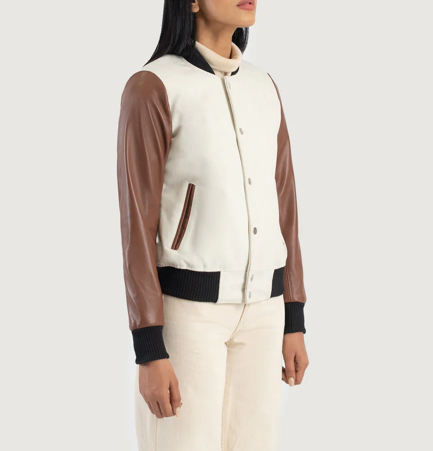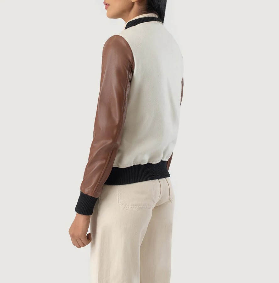 This jacket is a killer mix of retro charm and modern edge! The leather sleeves add a premium touch, while the wool/poly body keeps it comfy and stylish. Love the crisp white and brown comboβitβs bold but goes with everything. Perfect for layering, whether you're hitting the streets or just chilling. The fit is spot-on, and the quality feels solid. Definitely a standout piece that gets compliments every time I wear it. Worth every penny if you want a fresh take on the classic varsity look!