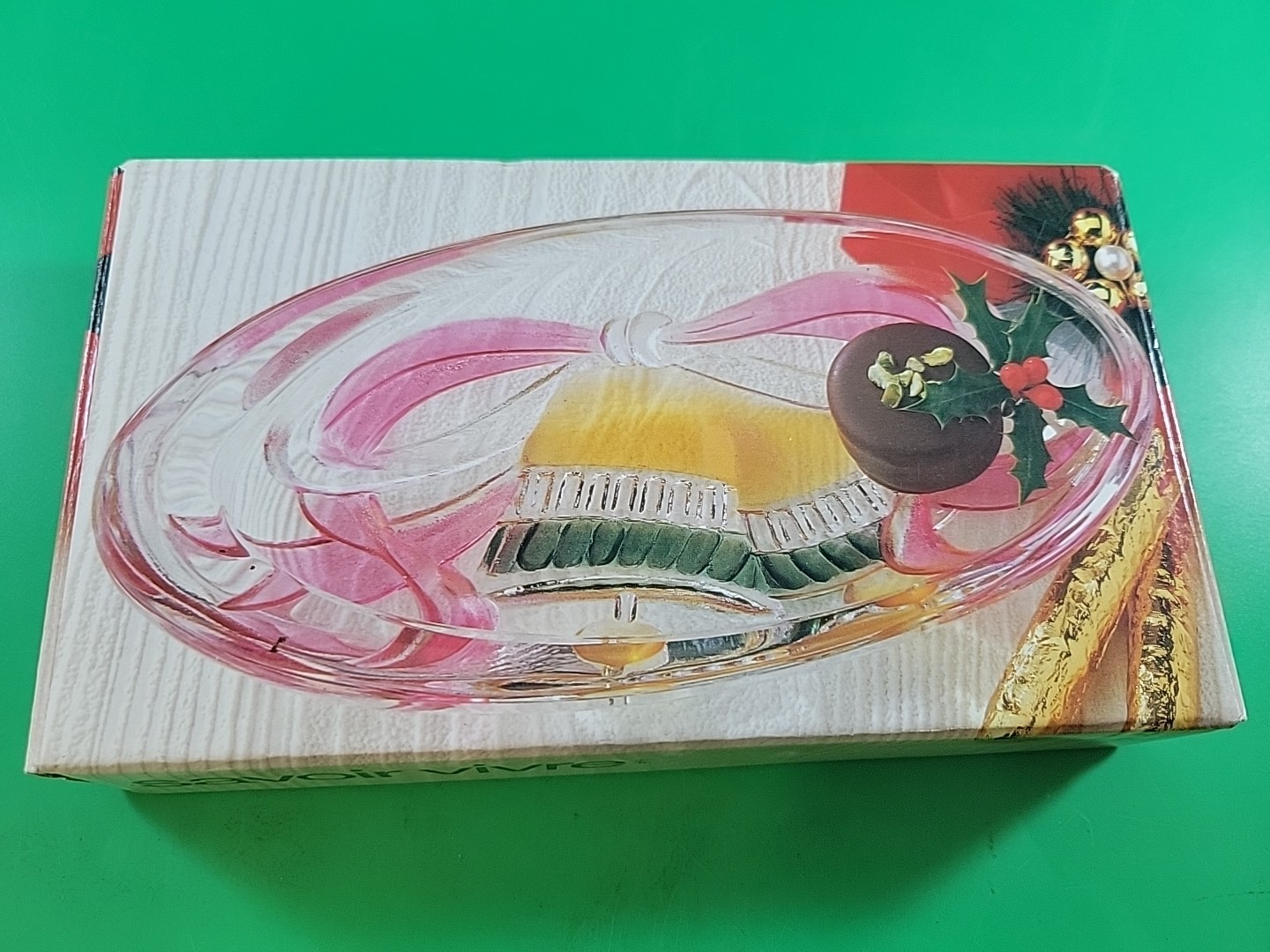 Our merchandise has been generously donated by the friends and families of Community Mainstreaming Associates (CMA). All proceeds from the sale of this item benefit CMA, a 501c3 charity supporting adults with intellectual and developmental disabilities. Thank you for your support. The Savoir Vivre Holiday Spirit Oval Glass Candy (or Soap) Dish with Bells is a festive addition to your Christmas decor. Made of multicolor glass and featuring a Christmas theme, this candy dish adds a touch of holiday cheer to your home. With a length of 7 inches and a width of 4 inches, this item from Japan is perfect for displaying your favorite candies or soaps during the holiday season. The bells on top add an extra element of charm to this beautifully designed dish.