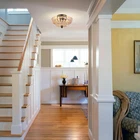 1 【 Classic Design 】: This semi-flush mount crafted from brushed brass finished metal and high-end sophisticated thicked clear glass, and its flowing glass shade gently disperses ambient light. its gleaming accents make this flush mount blend with glam and coastal decor styles. 【 Size and Bulb Requirement 】: Size: 7" High x 11.8" Wide, It fits 2* E12-based Candelabra bulbs, 60W Max (NOT INCLUDED). If you need dimming, you can purchase dimming bulbs and dimmers. 【 Easy Install 】: The semi flush mount light fixture is hardwired, includes instruction and all mounting hardware for quick and easy installation. The mounting base compatible with U.S.junction boxes. Center-lock glass shade allows for quick and easy bulb replacement. 【 Beautiful Lighting Effect 】: Exquisite clear glass shade with scallop-shaped. When light passes through shade, it will reflect a warm and beautiful lighting effect. Even when the lights are turned off, it can still showcase a elegant atmosphere for decoration. 【 Wide Application】:This vintage light fixture adds a decorative touch to any room while ensuring functional lighting. Ideal for Hallway, Entry, Porch, Mudroom, Stairwell, Kitchen, Closet, Kids Room, Dining Room, Bedroom, Living Room. This low profile ceiling light is great for rooms with low ceilings.