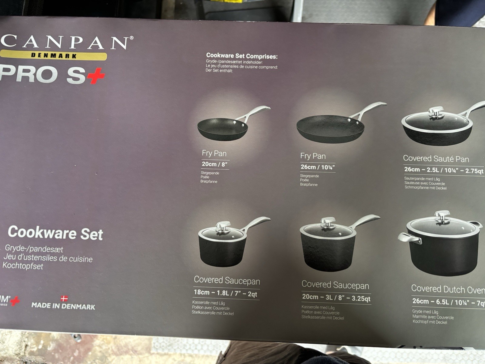 The Scanpan Pro S+ 10pc Set is a high-quality stainless steel cookware set designed for use on both electric and gas stoves. The set includes a lid, grill pan, and frying pan, all with a non-stick surface coating for easy cooking and cleaning. Made in Denmark, this round set features a black color and measures 10 inches in diameter and 11 inches in height. With dishwasher-safe and oven-safe capabilities, this Scanpan set is a versatile and durable addition to any kitchen.